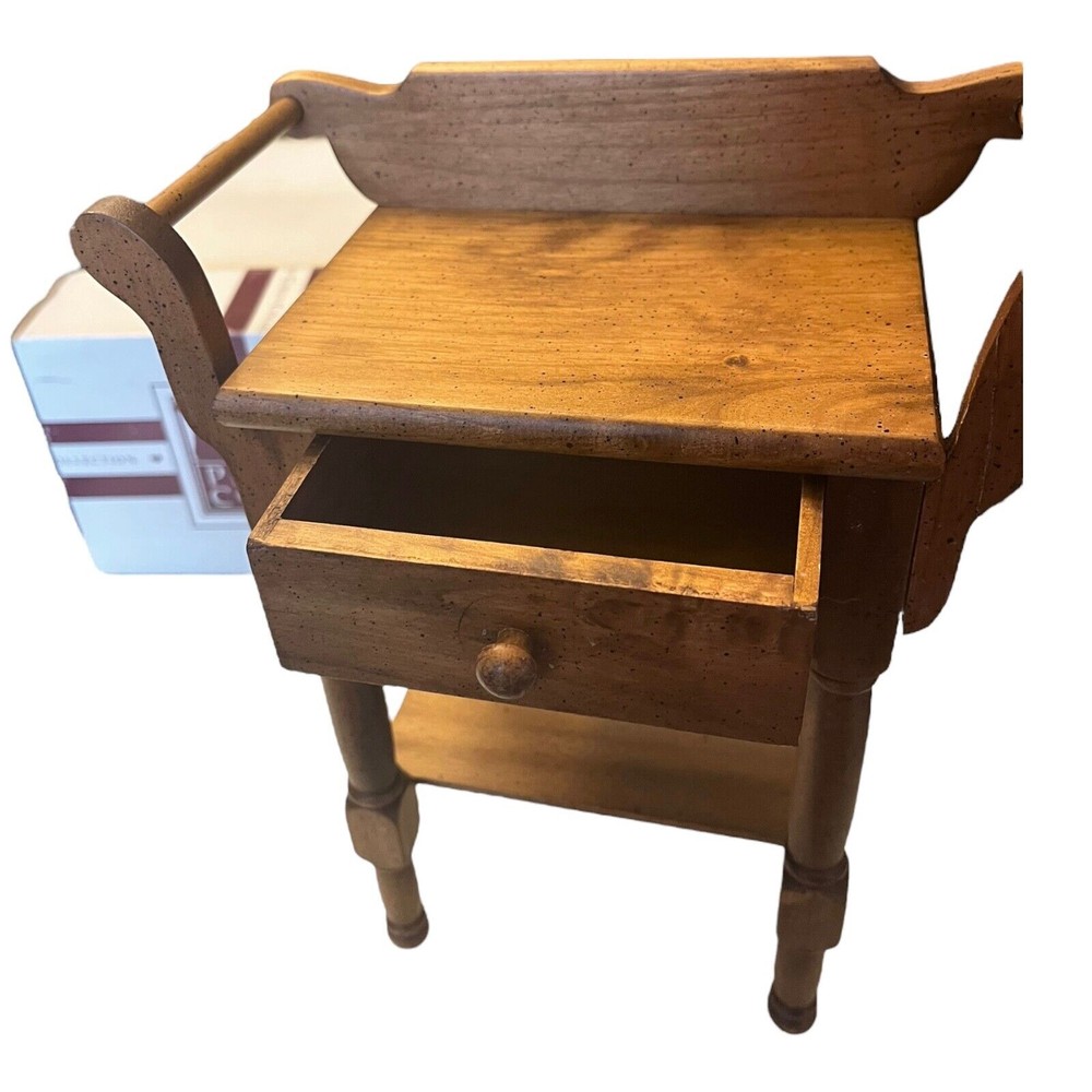 You Are Looking To Buy: American Girl Bedroom Furniture ADDY WASHSTAND Nightstand Dresser & Drawer - Great Vintage Condition In Original Pleasant Company Box! Details: Addy’s Washstand was introduced to Addy’s Collection in 1993 and retired in 2008 with Addy’s archival. Your Girl Can Set Up Her Doll For Bed With Addy’s Washstand With Functional Drawer For Addy’s Things Wooden washstand. Speckled finish. Towel bars on either side to hang washcloth. Functional drawer with circle knob. Lower shelf. Size: 11" High x 7.5" Wide x 4" Deep. Fits All 18"American Girl & Other 18" Dolls Great Condition In Pleasant Company Box - Box show wear consistent with age. Great Gift for Him or Her - or For Yourself! Thank You! We will ship your order immediately upon receipt of payment. For your convenience, we do combine shipping and often discounts on multiple item orders to same address. Please Come Back To Shop And Buy Again! ni