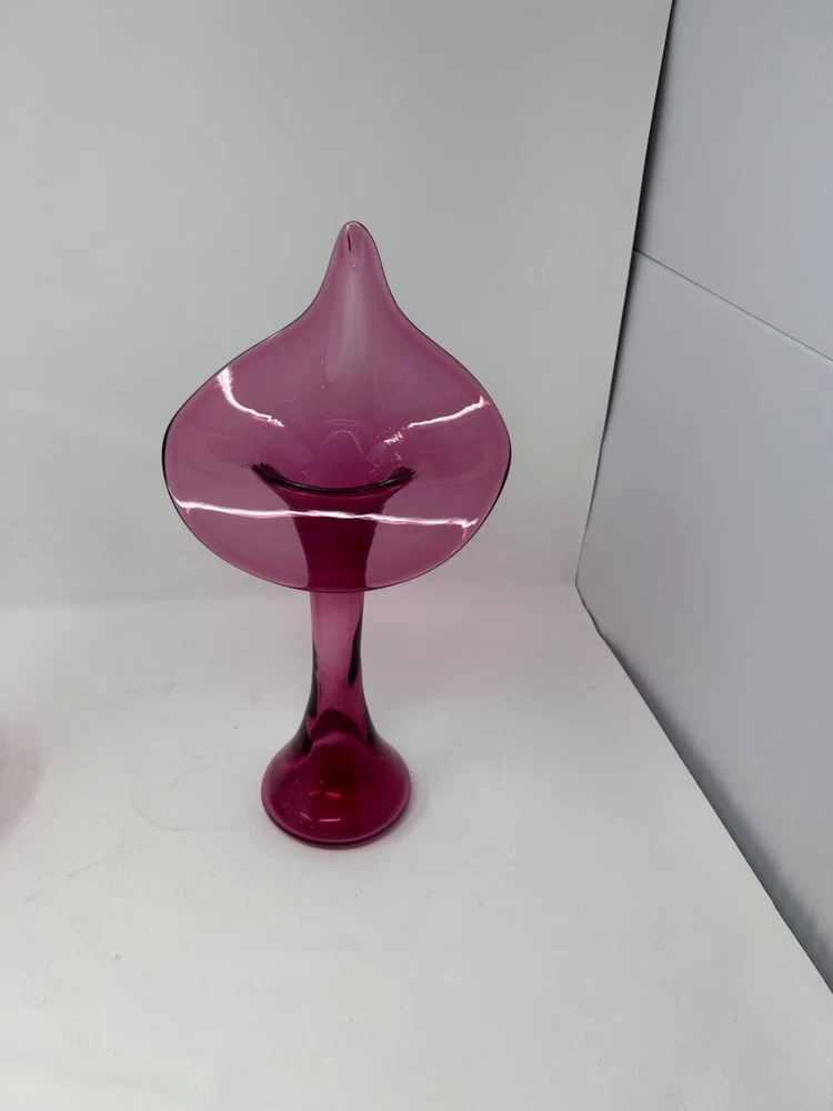Add a stunning vintage touch to your home decor with this elegant amethyst swung vase . This Mid-Century Modern art glass piece features a beautiful deep purple hue with a gracefully flared top, achieved through the classic swung glass technique . Likely crafted by Viking Glass, L.E. Smith, or Fenton , this pedestal vase is perfect for collectors, home decorators, or as a statement piece. Features: ✔ Beautiful amethyst glass with a glossy finish ✔ Classic mid-century modern swung vase design ✔ Sturdy pedestal base for display stability ✔ Ideal for floral arrangements or decorative accent 📦 Shipping: Securely packaged for safe delivery. 📸 Please review all images before purchasing.