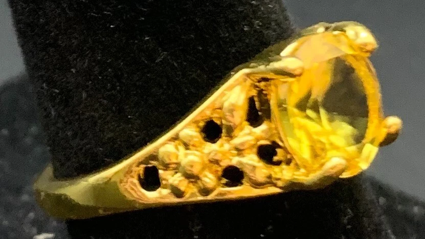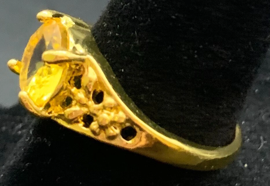Vintage Antique Gold Tone Yellow Rhinestone CZ Ring - Size 7