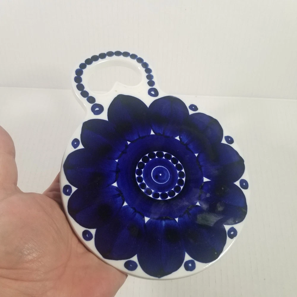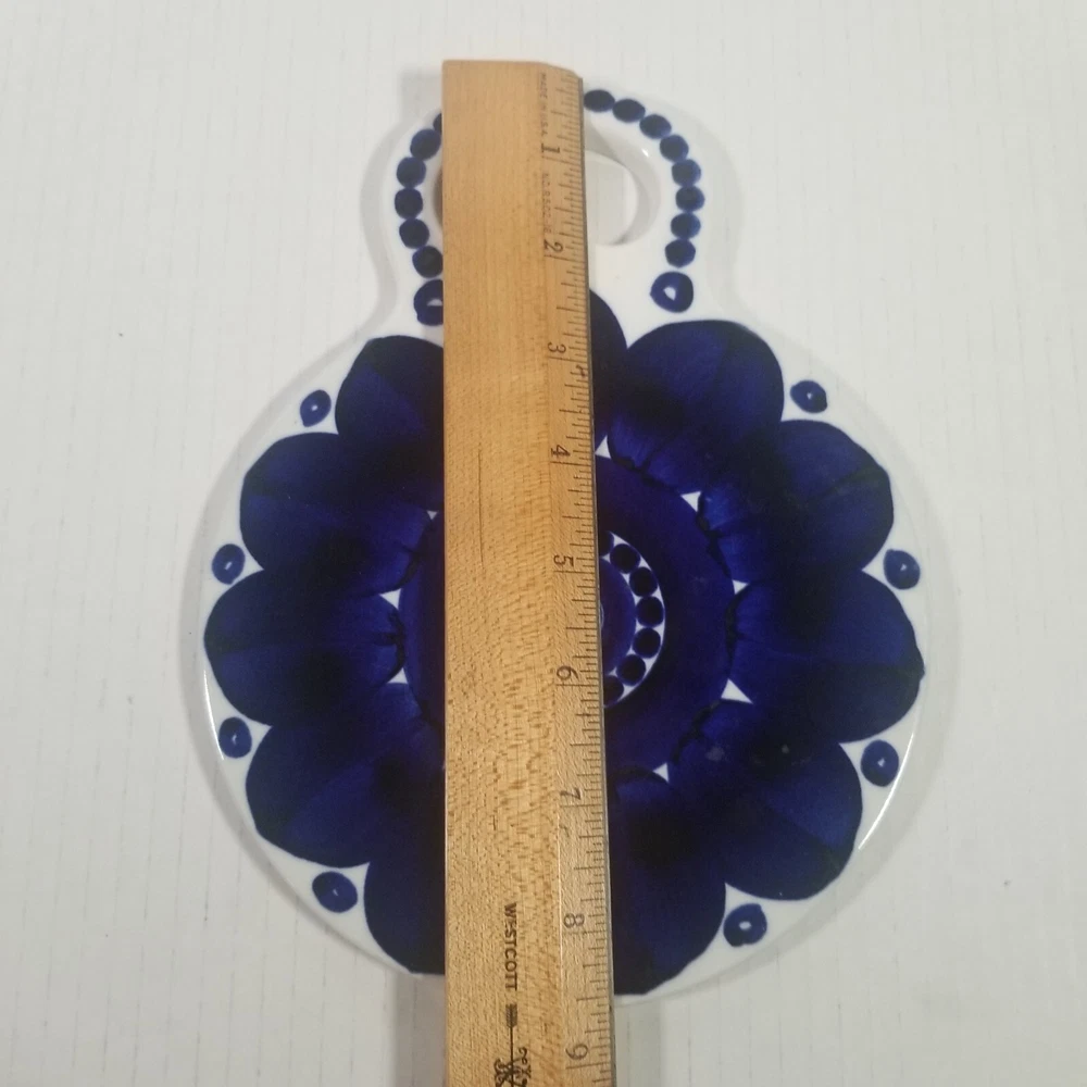 Vintage Arabia Finland Valencia Ceramic Blue and White Trivet Cutting Board 8.5" x 6.5" This hand-painted trivet/cutting board/cheese board, designed by Ulla Procopé, is in great condition. Please see pictures for a detailed description. Thanks for looking!