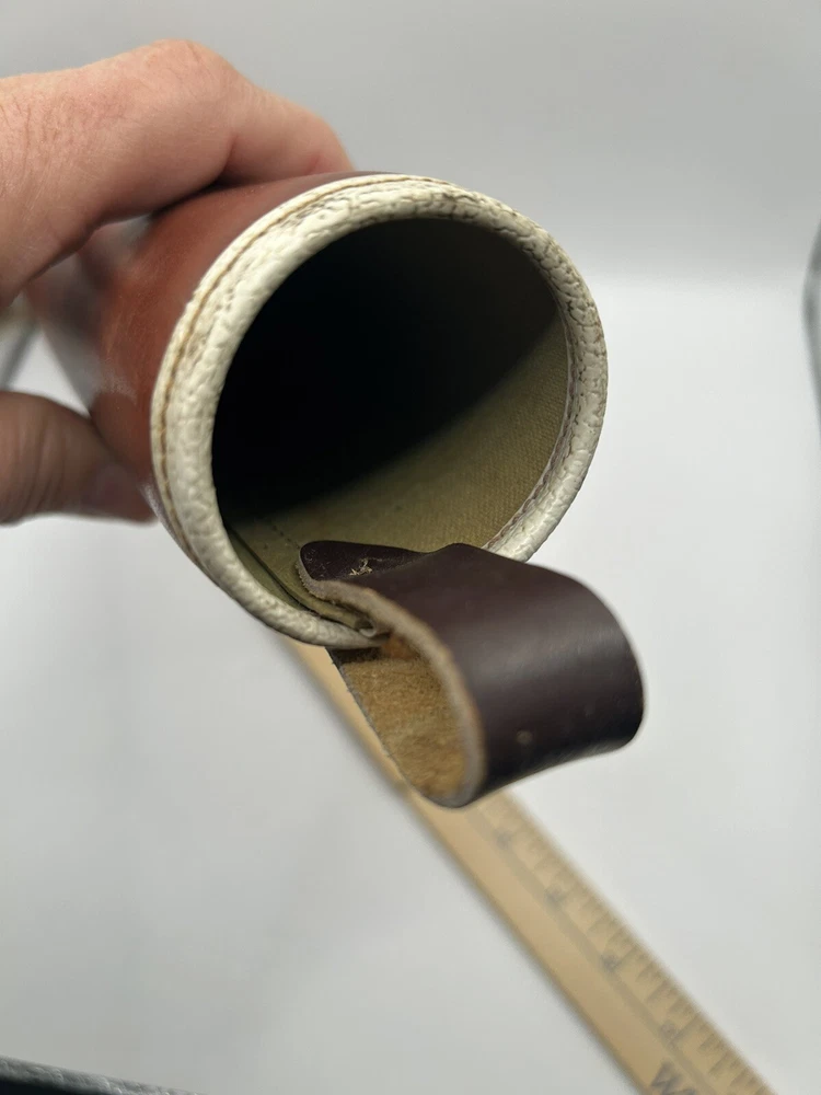 Nice quiver with 14512 marking on bottom Attaches with a belt loop. ~16” long (without belt loop) ~1.75” diameter at opening, ~1.5” at bottom. Last photo will show a small ink mark (less than an inch)
