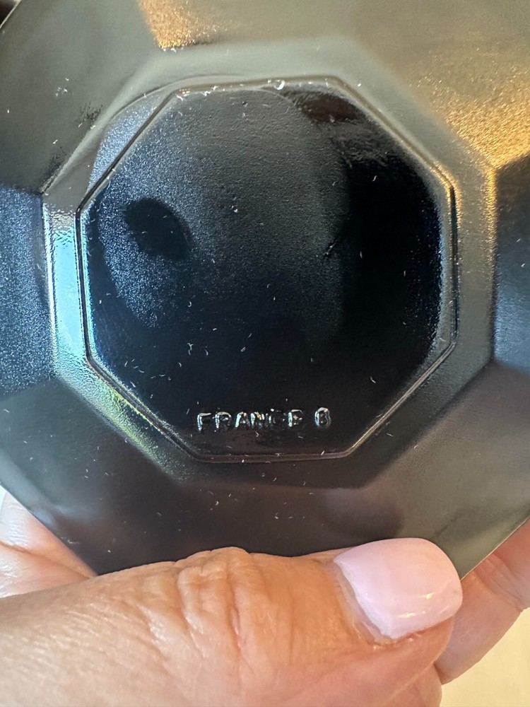 Enhance your dinnerware collection with these elegant Arcoroc Dishes from France. The six-piece set features an octagonal shape with eight sides, each adorned with a unique pattern. The black pressed glass material adds a touch of sophistication to any occasion, whether it's a formal dinner or a casual gathering. Crafted with care, these butter pats are an original production style from France and boast an impressive backstamp. The glossy finish and geometric shape make them a perfect addition to any plate, while the antique design adds a touch of nostalgia. Ideal for all occasions, these Arcoroc Dishes are a must-have for any glassware enthusiast. Vintage Pre-owned Great Condition-No Chips or Cracks-Pictures are part of the description. Please view all pictures and contact me if you have questions. Visit my Store for other Great Finds and when you find multiple items you desire to purchase, I will combine your shipments (if possible) to save you money. Thank you for Your Business,