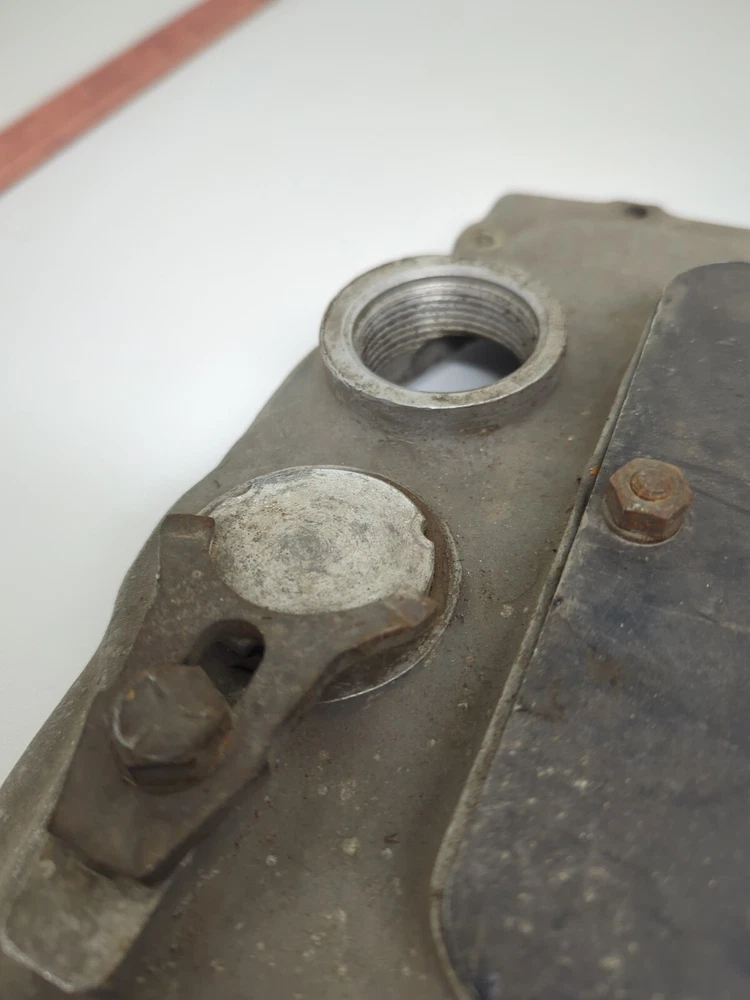 I got this along with some other parts from an estate. If you're looking at this there's a good chance that you know more about it than I do, lol. I did some looking online and this may be for an old Big block Chevy hemi conversion? I can't say for sure exactly what it fits -use it for garage art or a wall hanger for all I care. It is in good shape overall, no cracks or breaks, threads look good. Measurements are in the pics. If you have any questions just ask #1
