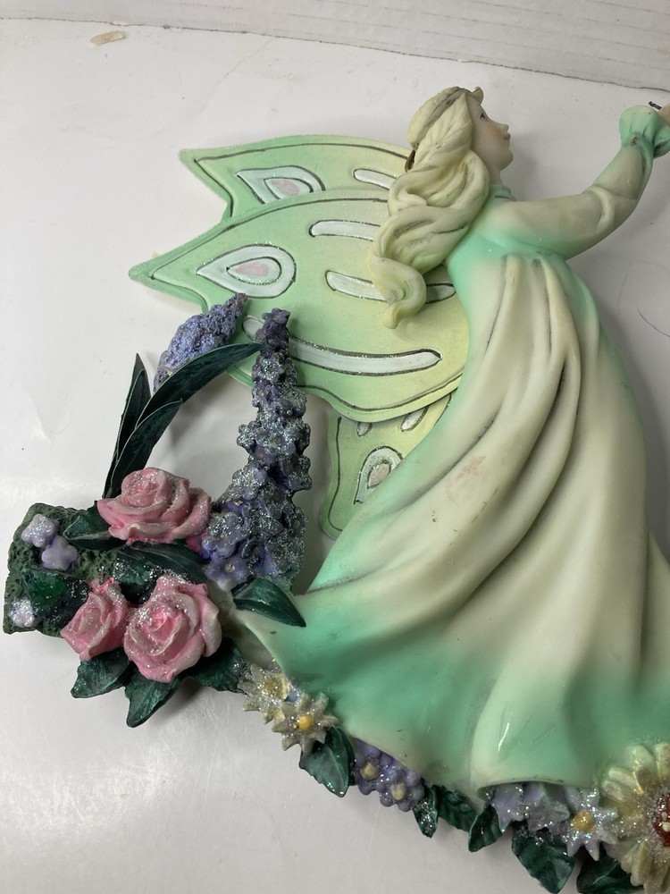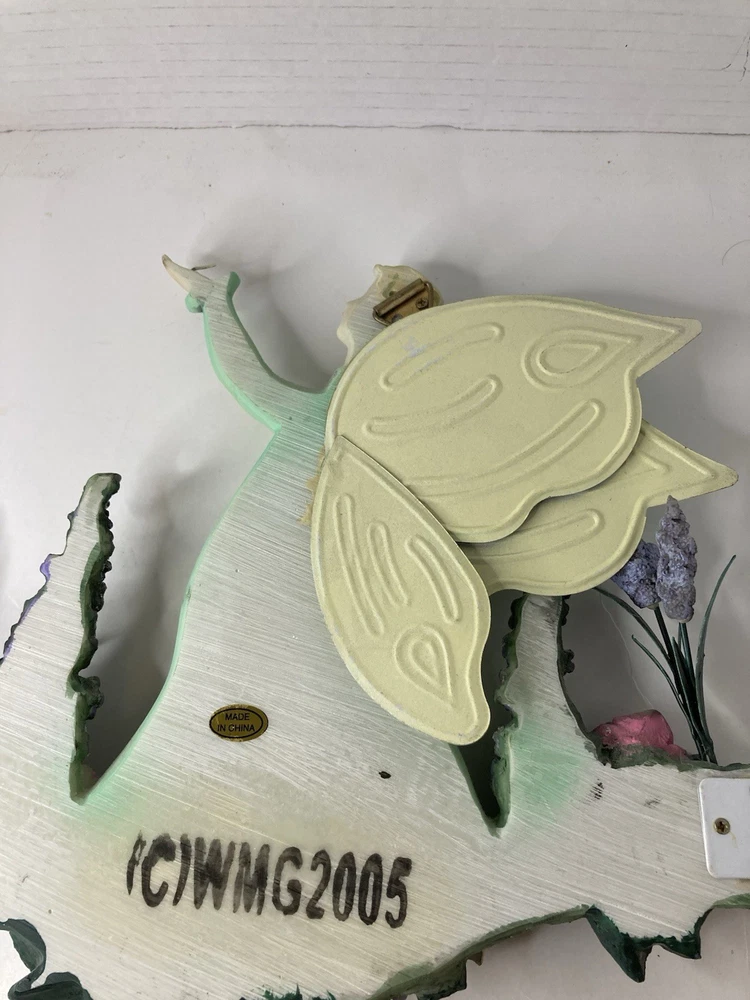 Missing butterfly in hand This Vintage FLOWER FAIRY PIXIE Wall hanging Art Deco Sculpture features a beautiful fairy figure with metal wings, adding a touch of whimsy and charm to any room. Made of metal and originating from China, this sculpture exudes an Art Deco style that is both elegant and playful. Perfect for fans of fairies and those looking to add a unique piece of art to their space, this wall hanging is a single piece that will surely be a conversation starter in any home.