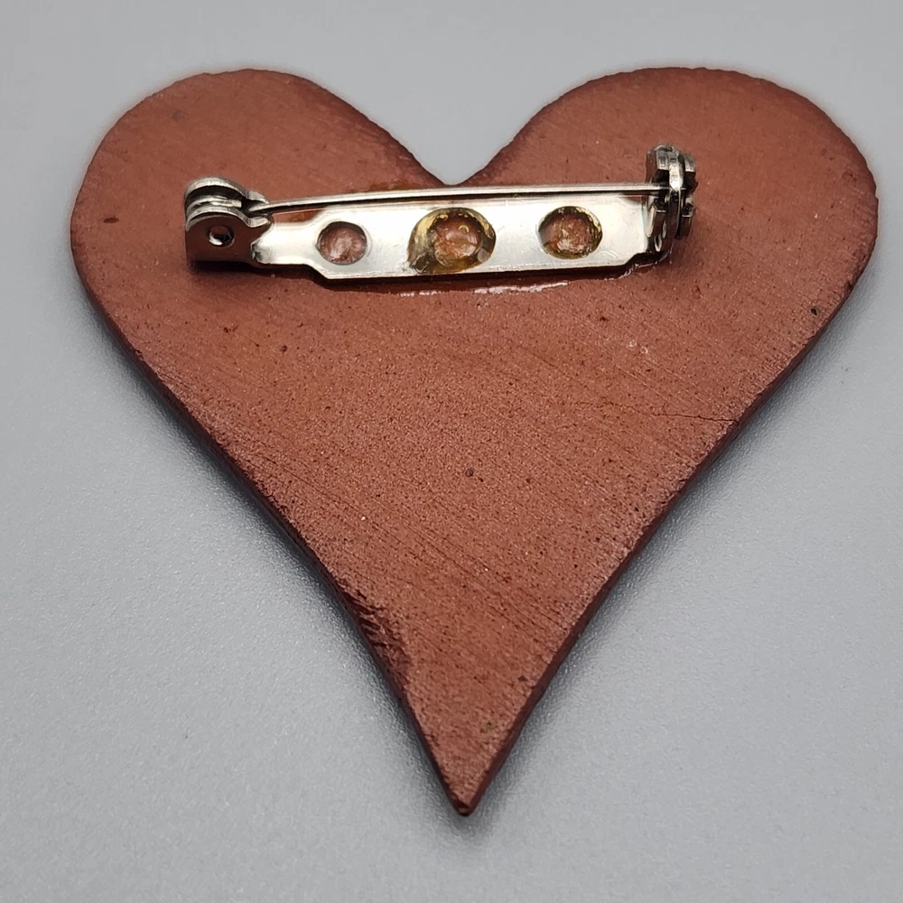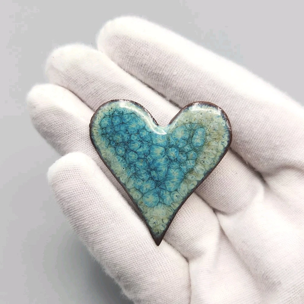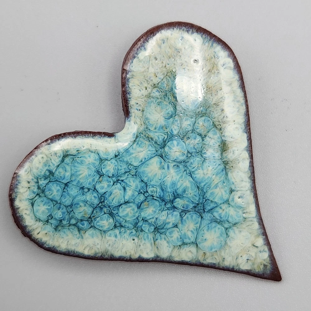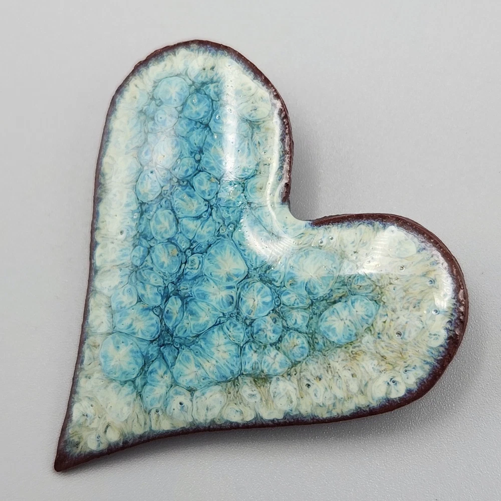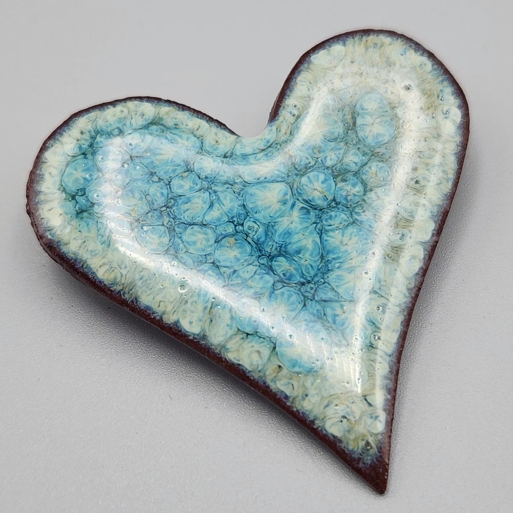 We LOVE this art pottery brooch. It has such an interesting chaotic pattern that reminds us of its glass counterpart, millefiori. It also looks like a huge cluster of blue lilypads, and it even has a bit of a crystalline glaze style to it. Just pretty all around. In good vintage condition--wear is consistent with age and use. Please see photos for more detail.