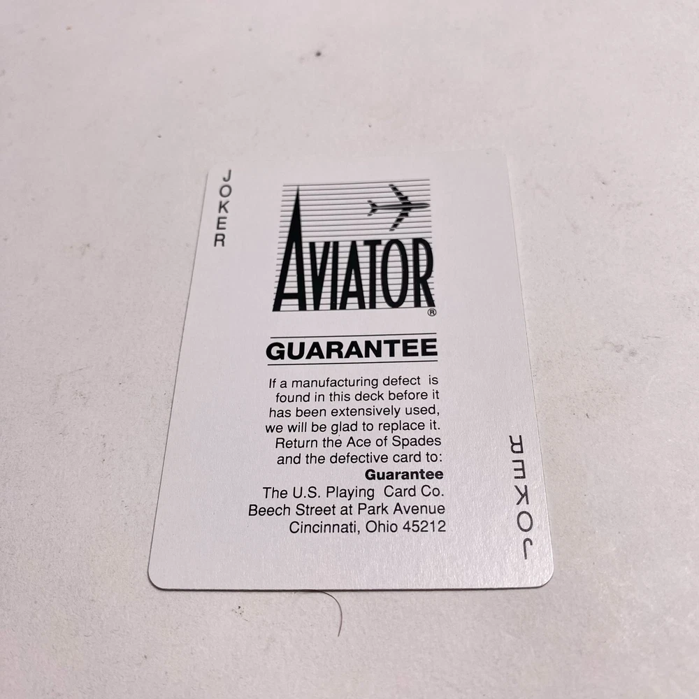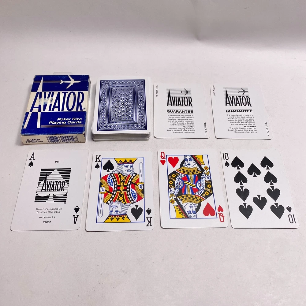 Brand:AviatorTheme:PokerSeller Notes:“Complete 52 card deck plus 2 jokers. Photos show the actual items you will receive.”Country/Region of Manufacture:United StatesAge:Modern (1970-Now)