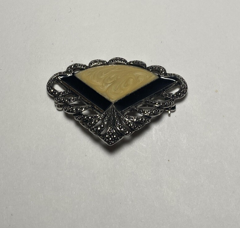 Vintage Avon Black Onyx Textured Triangle Brooch in Silver Tone