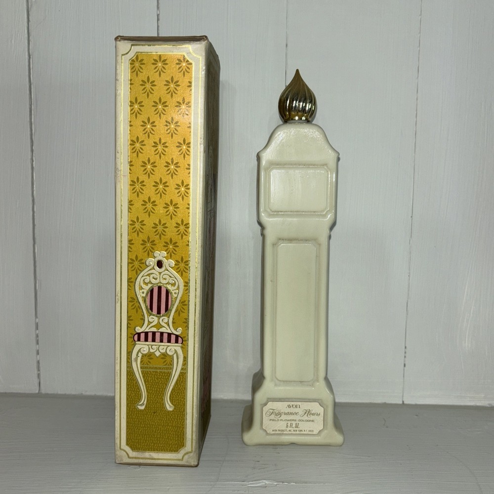 The Vintage Avon Fragrance Hours Cologne Bottle from 1973 is a collectible item in its original packaging. This full bottle of cologne comes with a multicolor glass design featuring a bird motif, typical of Avon's Milk Glass collection. Ideal for adults and all occasions, this unique piece represents a nostalgic charm from the 1970s with its classic bottle shape and timeless fragrance. Perfect for collectors or those looking to add a touch of retro flair to their home decor.
