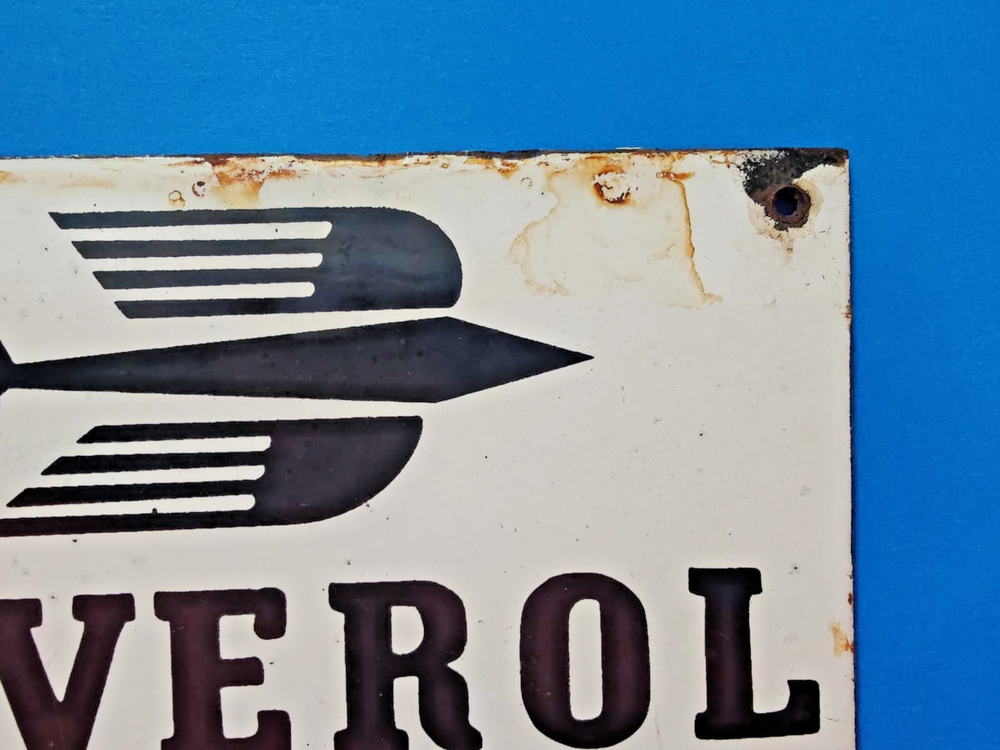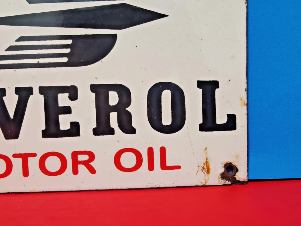 $ 42.24Vintage BEVEROL MOTOR OIL Porcelain Enamel Sign 8" x 5" Inch