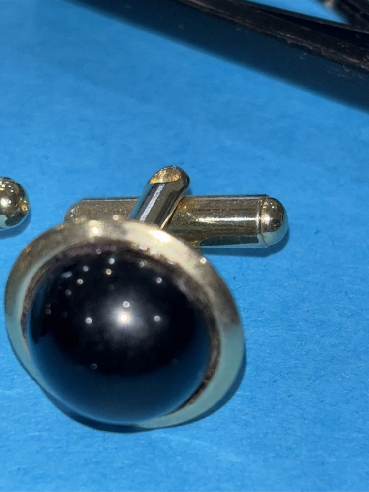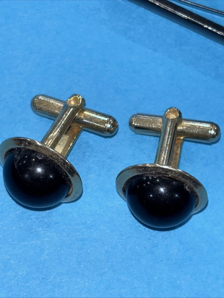 HomeVintage BLACK ONYX DOMED CUFFLINKS And Tie Clip Bar