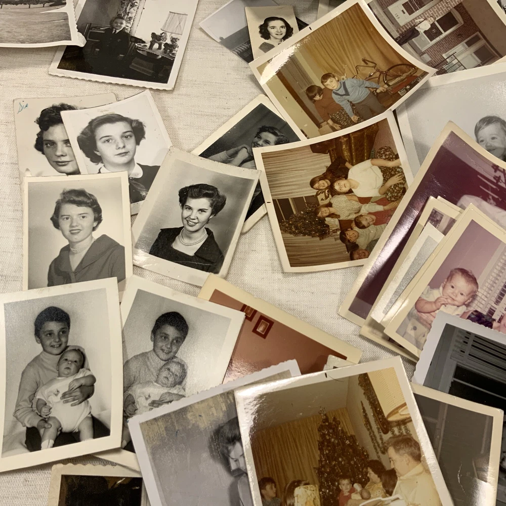 Vintage BLACK & WHITE FOUND PHOTOS Old Snapshots Antique GRAB BAG Lot RANDOM Used photos. These are old and a lot of the photos have a bow (cupped) or curve to the picture. They do noy lie flat. Some might have tears or creases. Please see the pictures. All photos in the photos are included. Some color ones are mixed in as well.