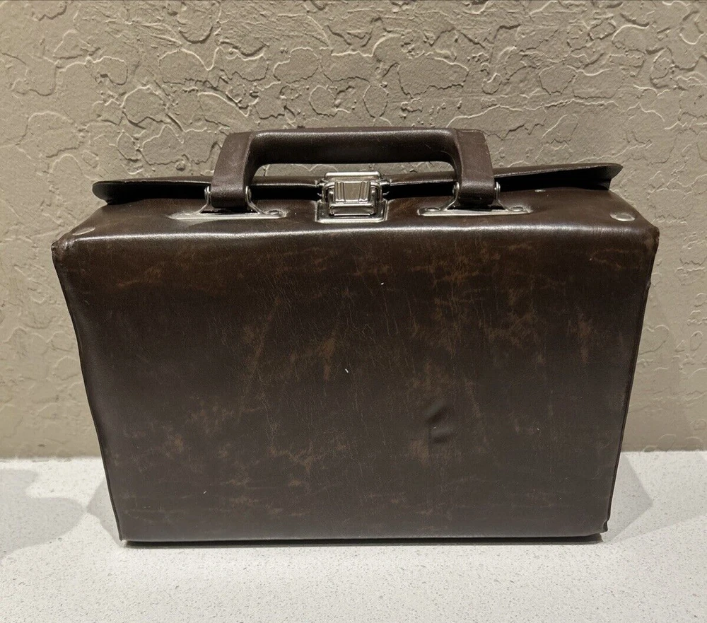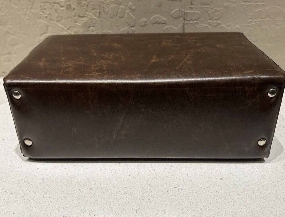 Vintage BMI 12 Cassette Tape Storage Case Holder Brown with Handle Great small vintage case. Please see pictures that plastic insert for tapes inside have a very small imperfection or tear due to age. Will not affect tapes storage. Thank you.