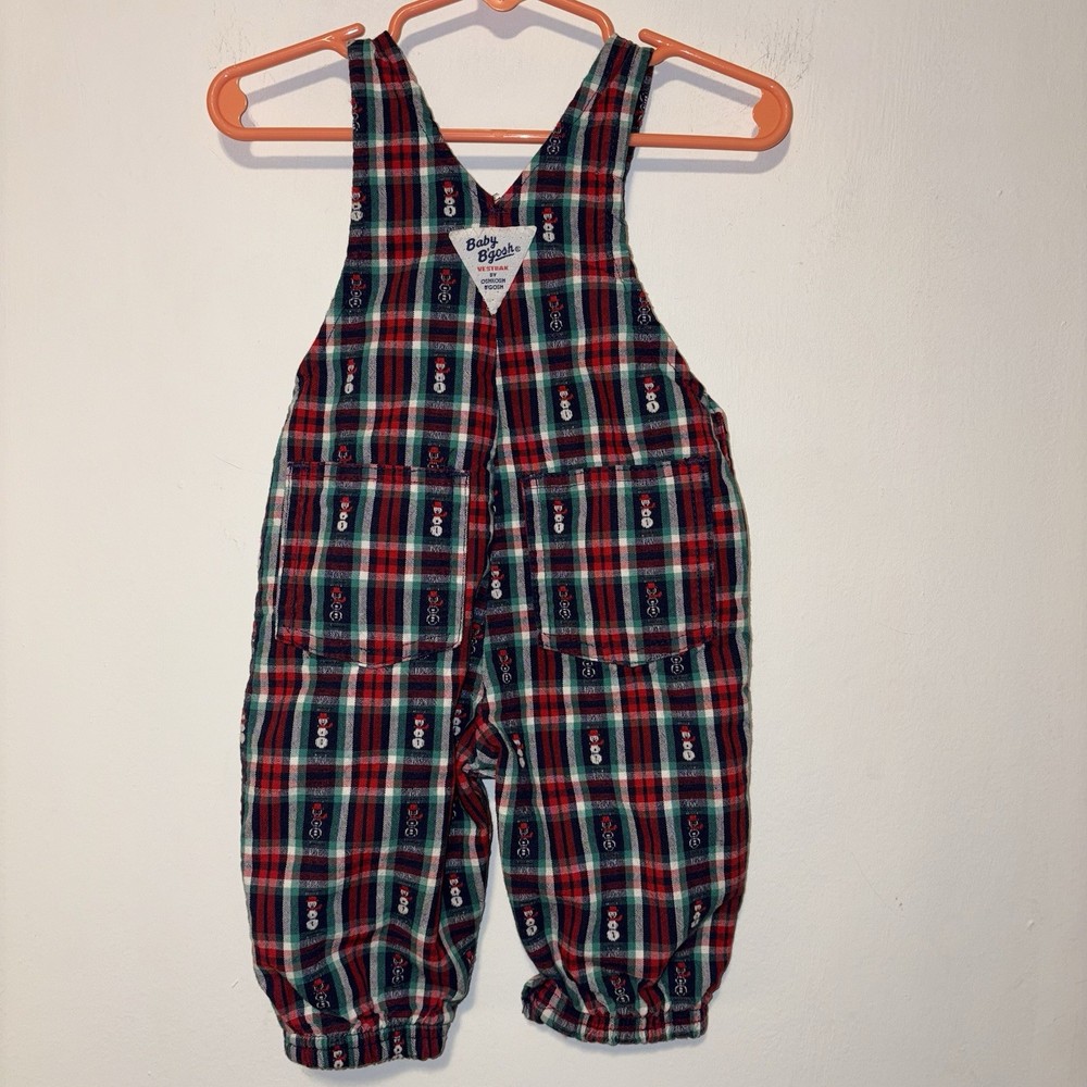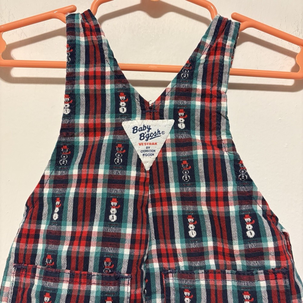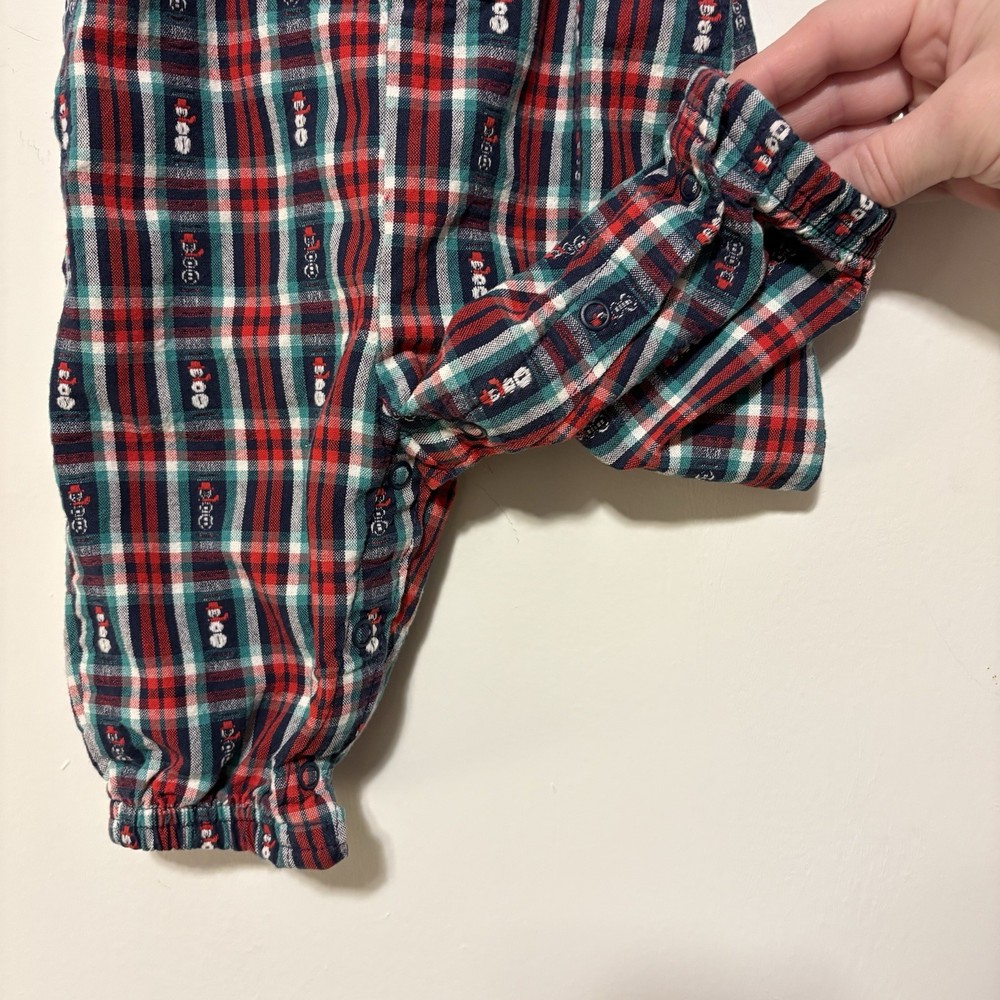 Great vintage condition! Plaid overalls with embroidered snowman print Classic buttons on adjustable straps Snaps along inseam Elasticized ankles Perfect for the cozy winter months and holiday / Christmas season!