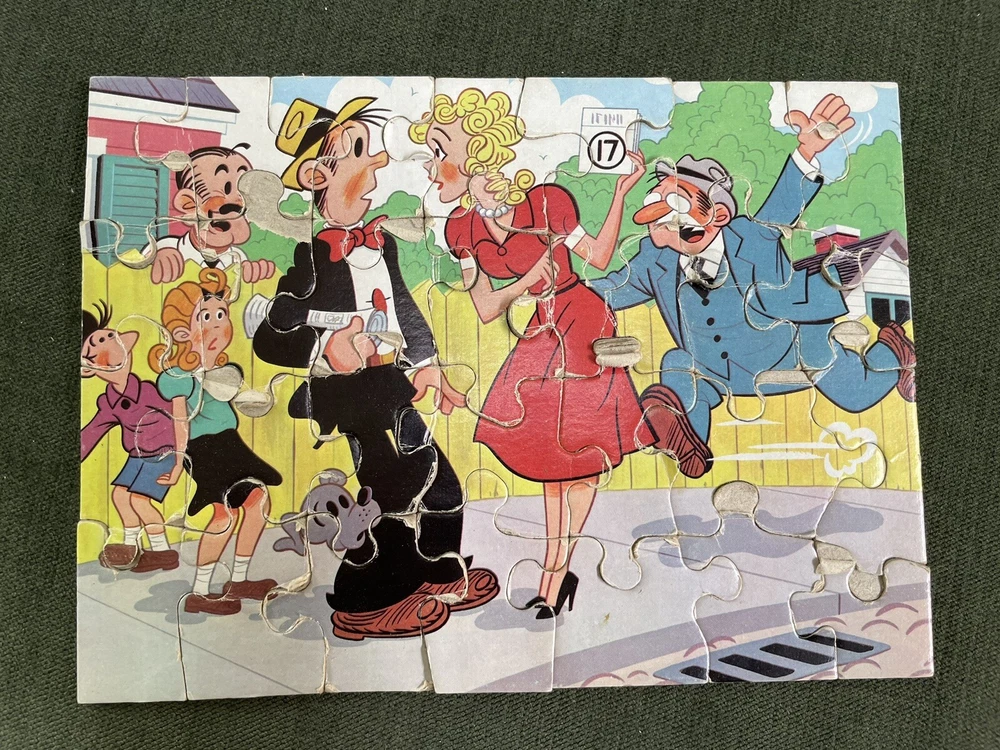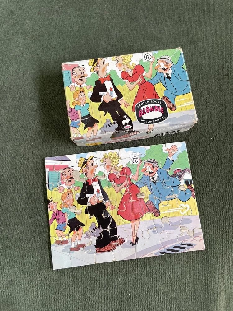 This vintage Bantam pocket BLONDIE jigsaw puzzle is a must-have for collectors and fans of the franchise. With 28 pieces, this puzzle is complete and ready to be enjoyed.