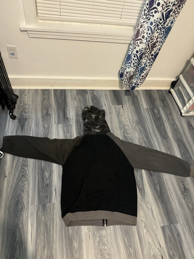 Vintage Bape Zip Up Hoodie Black And Grey Camo