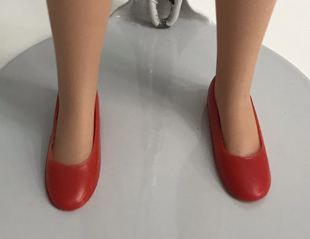 Vintage Barbie SKIPPER DOLL # 950 Red White Stripe SWIMSUIT & SHOES ONLY No Doll The doll and stand are not included. The swimsuit has some discoloration. Please see photos for details.