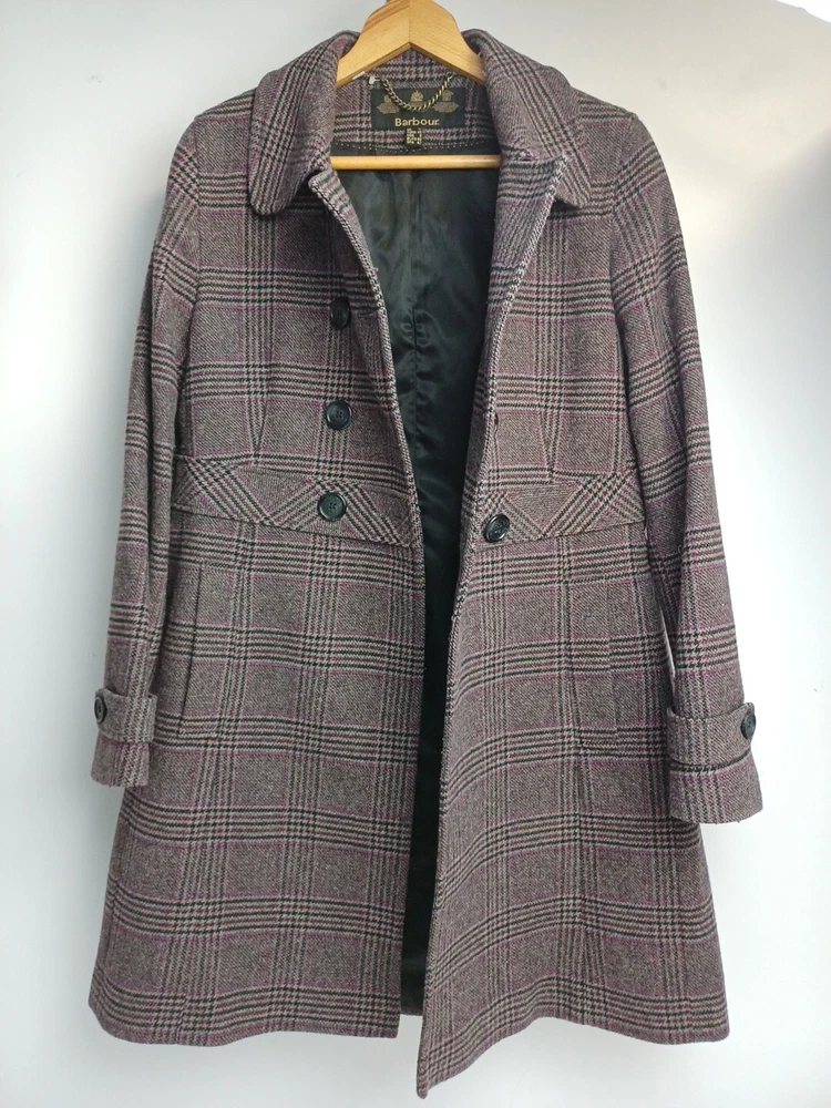 St Leonard's Ebay Shop Item Description Lovely ladies Barbour tweed coat. Neatly pattern matched checked/ tartan style design. 66% wool 21" pit to pit 18" Pit to cuff 16.5" across the shoulders 36" shoulder to hem Item Condition Very good used condition, no holes stains or pulls. See photos. Gift Aid This item is being sold under the Retail Gift Aid scheme which enables us to increase the value of donations by 25%. St Leonard's Hospice is acting as an agent selling this item on behalf of the Gift Aid Donor. Questions : St Leonard's eBay office is open 8.30 - 4.30 Monday to Friday. Any questions and cases will be responded to within these times. Auction and Buy it Now : In order to be fair to all, we do not end auctions early. Only those items listed as Buy it Now will be sold on that basis. Delivery : Where postage is included, the item will be dispatched within 3 working days of receipt of payment. We are happy for you to organize your own courier, but please note we are unable to accept responsibility for any damage or loss in transit. International Shipping : For international shipping we use Ebay's 'Global Shipping Programme'. Items are first shipped to the UK international shipping depot before being posted internationally. For eligible items Ebay manage the international postage and customs process. All items have been generously donated to our charity. Thank you for your interest and support.