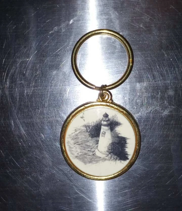 Vintage Barlow Scrimshaw Lighthouse Keychain Keyring