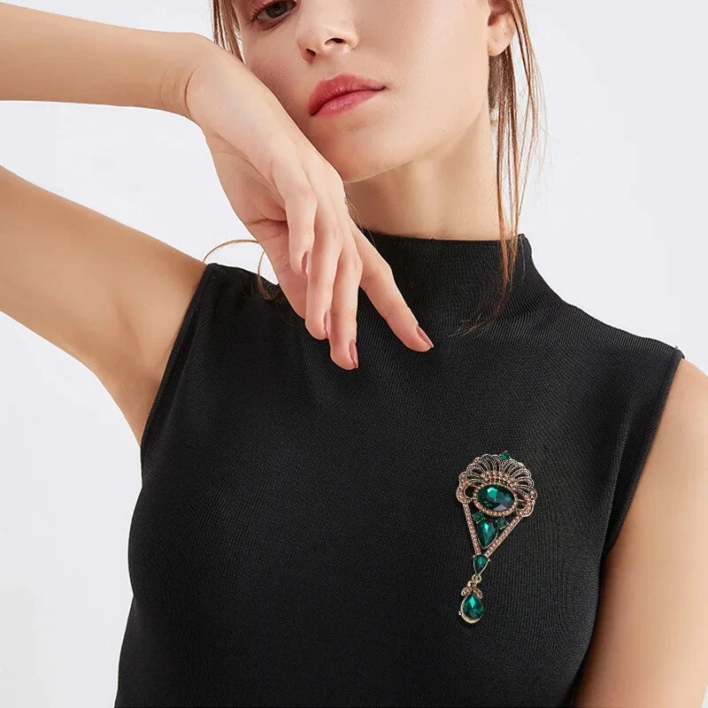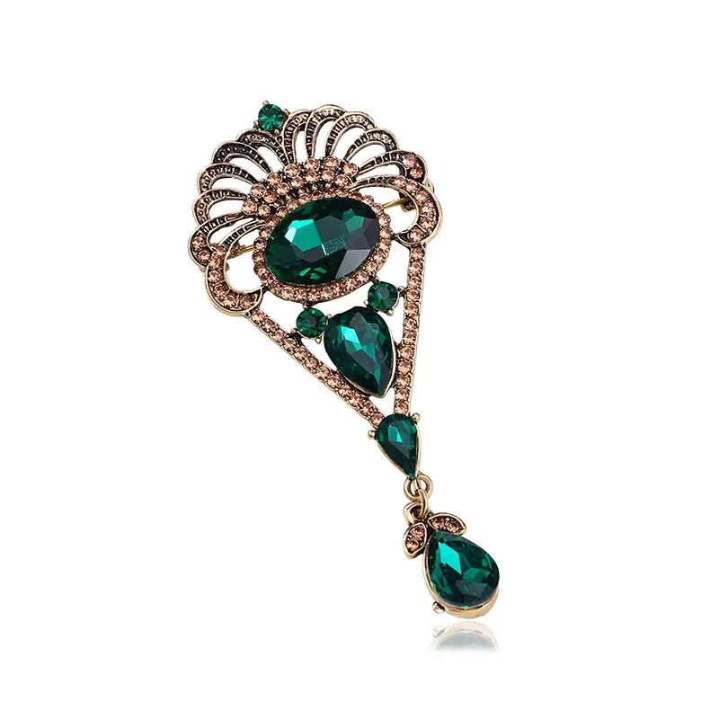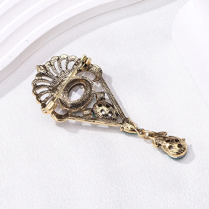 Vintage Baroque Drop Pendant Brooch Feminine Court Rhinestone Coat Pin Accessory