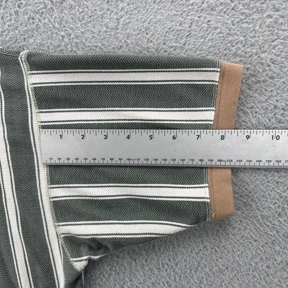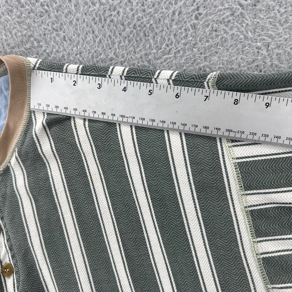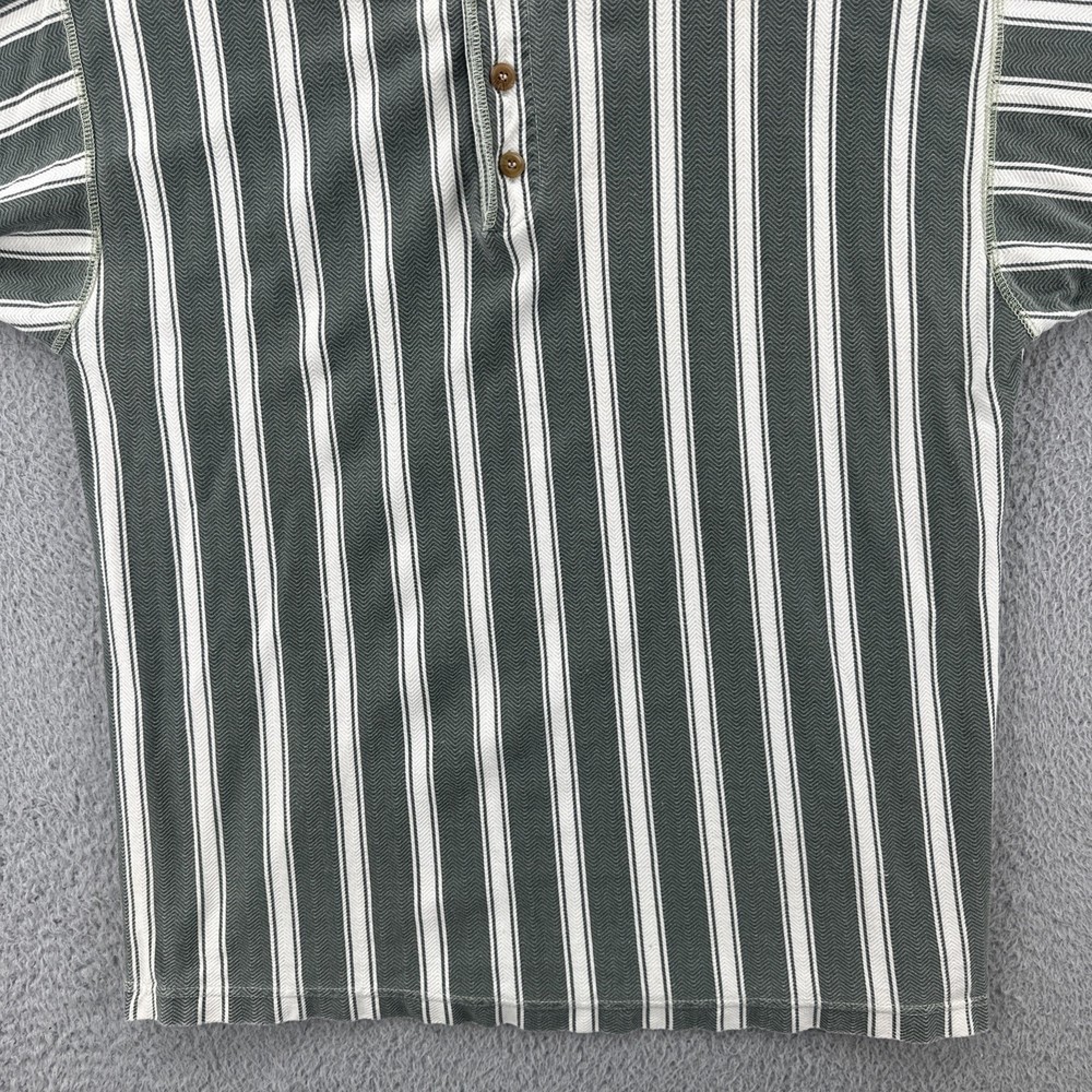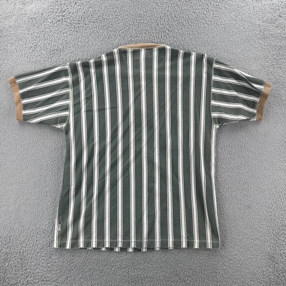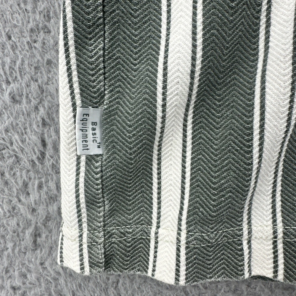 The Vintage Basic Equipment Men's Large Cotton Striped Henley Shirt is a stylish and classic addition to any man's wardrobe. Made from comfortable cotton material and featuring a vintage design, this short sleeve shirt in a multicolor striped pattern exudes a hipster and 90s vibe. The Henley neckline adds a unique touch to the regular fit of the shirt, making it a versatile piece that can be worn for various occasions. Perfect for men looking for a timeless and casual yet fashion-forward look. No holes or stains See pictures for pictured measurements compare with your favorite garment and ask questions if you have any Add to your collection today Browse my other items I can combine shipping