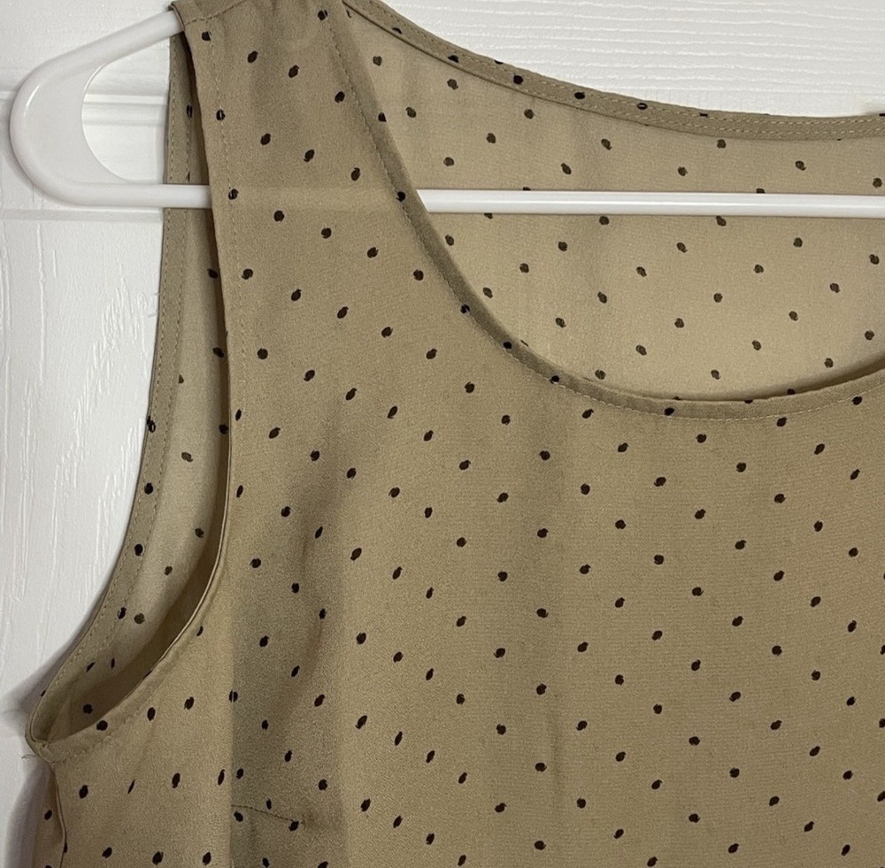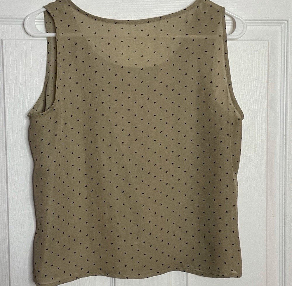 Vintage tan tank top with black polka dots Somewhat of a sheer/see through material Unknown brand and size - best guess is a Medium.. it was a shirt of my grandmothers from the 1960s
