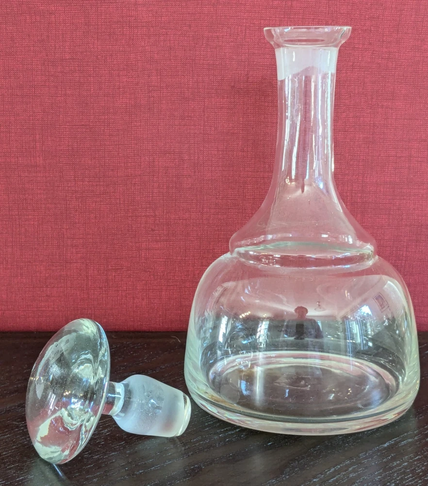 This **Vintage Bell-Shaped Lead Crystal Decanter** is a true masterpiece of craftsmanship and elegance. With its graceful bell-shaped silhouette, it exudes a timeless charm that elevates any collection or bar setup. The decanter is made from high-quality lead crystal, known for its clarity and brilliant shine, which enhances the rich colors of your favorite spirits. The finely crafted stopper fits perfectly, keeping your drinks sealed while adding a touch of refinement to the overall design. The clean, simple lines of the bell shape combined with the luxurious weight of the crystal make this decanter both a functional piece and a stunning decorative accent. Whether you’re showcasing it as a statement piece or using it to serve your finest liquor, this decanter is sure to be admired by all. A perfect blend of vintage elegance and fine craftsmanship, it’s an exquisite addition to any home, bar, or collection.