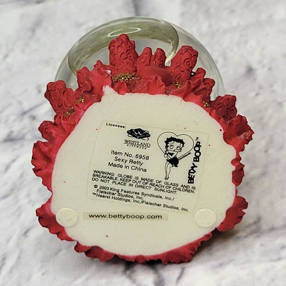 Vintage Christmas Westland Betty Boop Sexy Betty Snow Globe 6958 Rare Collectible πβοΈβ¨ Add a touch of vintage charm and playful elegance to your holiday collection with the Vintage Christmas Westland Betty Boop Sexy Betty Snow Globe. This rare and collectible snow globe features Betty Boop in a festive and fun pose, capturing her timeless allure and holiday spirit in a beautifully crafted piece. Product Details: πΉ Brand: Westland πΉ Character: Betty Boop πΉ Model Number: 6958 πΉ Type: Snow Globe πΉ Condition: Vintage, Excellent Condition πΉ Rarity: Rare Collectible Key Features: π Charming Betty Boop Design: This snow globe features a festive Betty Boop in a sexy and glamorous pose, encapsulating the spirit of both Christmas and the iconic character. βοΈ Snow Globe Magic: Shake it up and watch the sparkling snow swirl around Betty Boop, creating a magical and nostalgic holiday scene. π Rare Collectible: A must-have for collectors of Betty Boop memorabilia or holiday snow globes, this piece is sure to be a standout addition to any collection. Benefits: π Timeless Holiday Decor: The snow globe brings a delightful and whimsical touch to your holiday decorations, making it a charming centerpiece for your home. π Unique Gift Idea: Ideal for Betty Boop fans or collectors of vintage holiday decor, this snow globe makes for a thoughtful and special gift. π Perfect for Displaying: A beautiful collectible thatβs perfect for showcasing on mantels, shelves, or any festive space in your home. Perfect For: π Holiday Decor Enthusiasts: A fun and stylish addition to your Christmas decorations, perfect for adding a bit of retro charm. π Betty Boop Collectors: A must-have for fans and collectors of Betty Boop memorabilia, particularly for those who love holiday-themed pieces. π Gift Givers: An excellent gift for those who appreciate vintage and collectible items, especially for the holiday season. Enjoy SAME-DAY FREE SHIPPING! As a small family business, we are committed to using recycled packaging materials to support environmental sustainability. ππ¦ Bring home the magic of Christmas and the charm of Betty Boop with the Vintage Christmas Westland Betty Boop Sexy Betty Snow Globeβorder yours today and make your holidays extra special! βοΈπβ¨