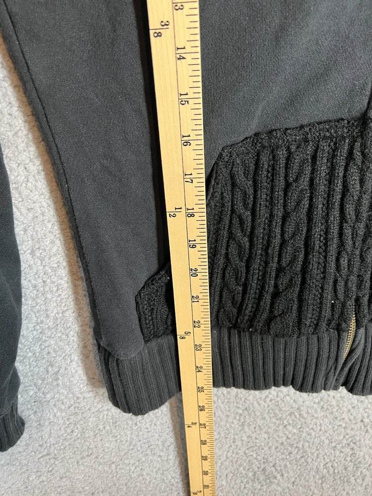 Vintage Y2K Billabong Black Embroidered Full Zip Surf Skate Knit Hoodie Sweatshirt Jacket. Women's Size Large. Sweatshirt material with cable knit details. Embroidered logo on front and back. Hood is lined with fleece. Drawstring on hood. Great pre-owned condition. Mild wash wear present. Approximate Measurements: Chest (pit to pit): 19.5 inches flat Length (shoulder to hem): 25 inches Please see measurements as all brands can vary in size.