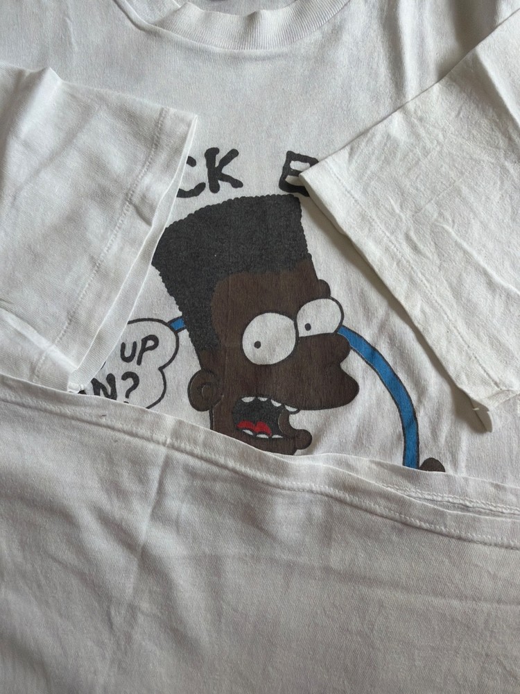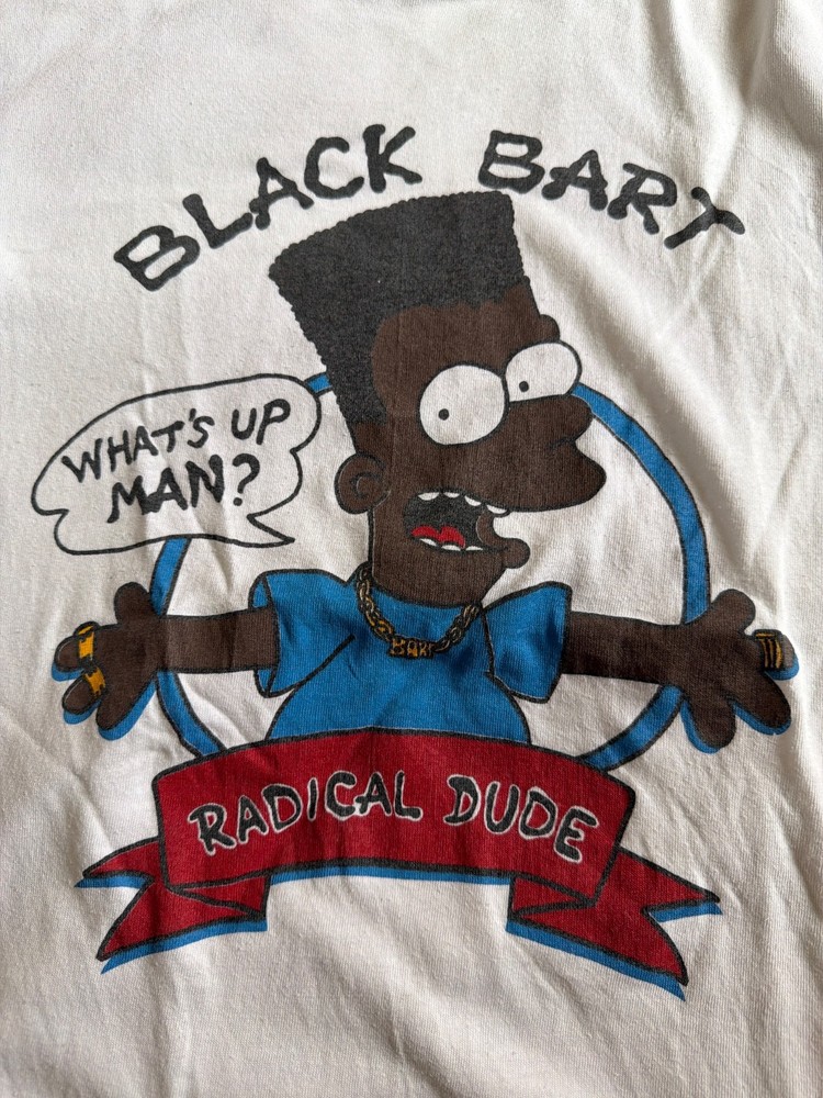 Width: 21.5” Length: 28” This Vintage Black Bart Simpson's Radical Dude shirt is a nostalgic piece perfect for fans of the 90's era. The XL size shirt features a graphic print of Bart Simpson, with a white color made of cotton material. This regular fit T-shirt is ideal for all seasons, especially summer and spring, and is machine washable for easy care. Made by Hanes in the United States, this vintage shirt is a must-have for any Simpsons collector or 90's enthusiast.