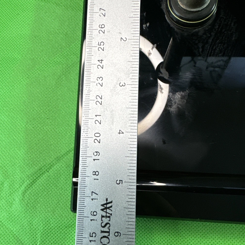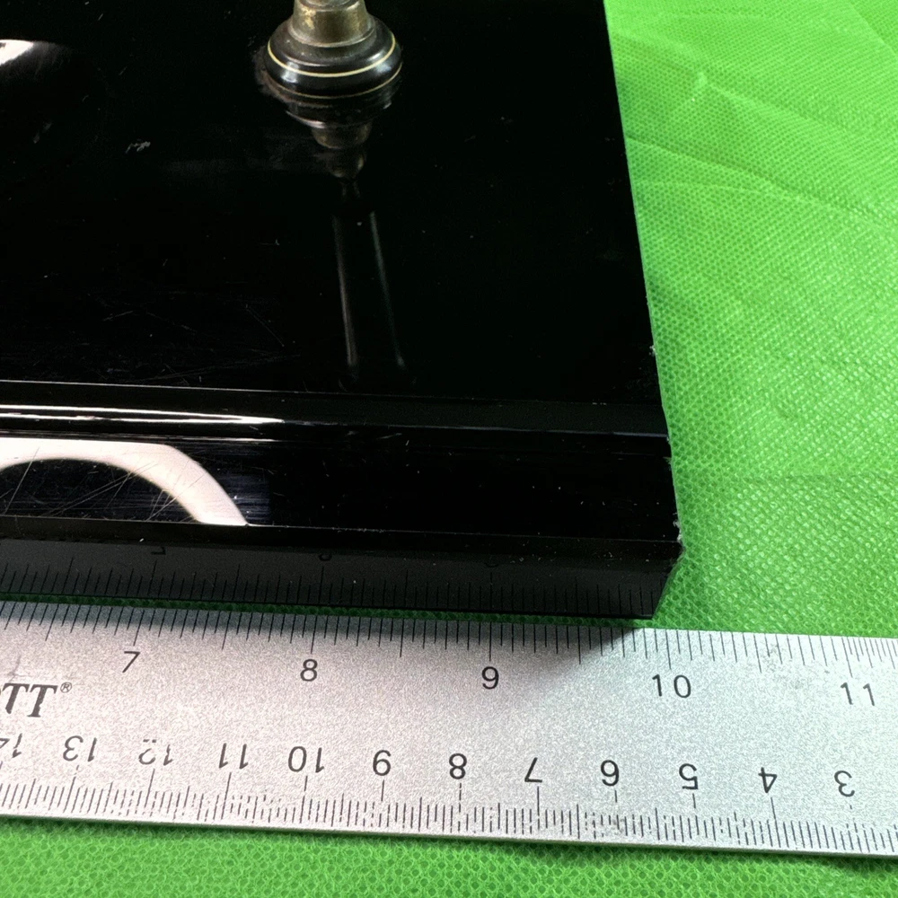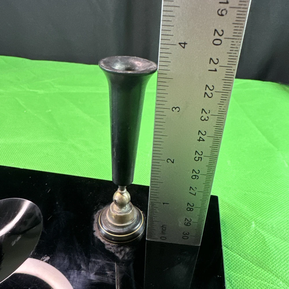 The vintage black gloss marble base 2 pen stand with Bakelite rest is a rare desktop collectible measuring 10x6 inches. It features a classic design with a touch of elegance, ideal for displaying and organizing pens on a desk or tabletop. There is a crack on the bakelite holder (see the condition in the photo)
