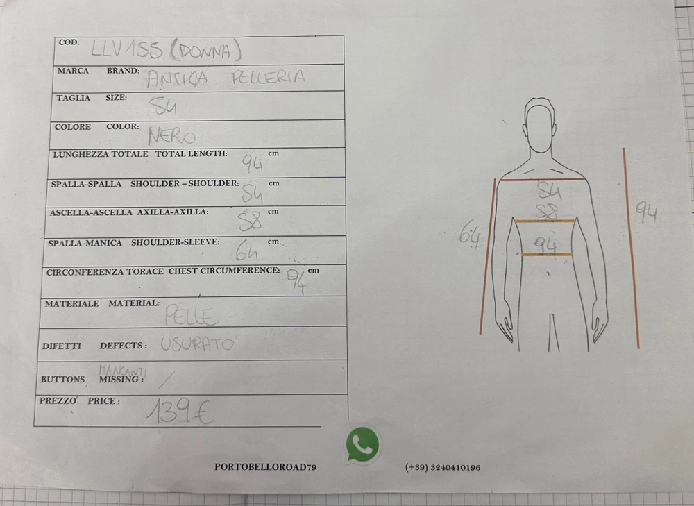 Outer Shell Material:LeatherSize:54Closure:Zippergtin13:Does not applyBrand:Antica PelleriaSize Type:RegularColor:BlackUPC:Does not applyDepartment:womanStyle:JacketVintage:YesType:Jacket