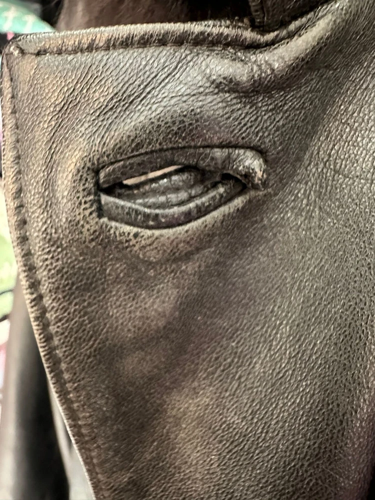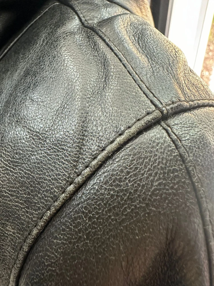 This vintage leather jacket is a true gem—soft, well-worn leather with a rich, lived-in feel. The fit is perfect for a relaxed look, and the black color adds timeless style. It’s got great character, like it’s been on countless adventures. Super comfortable and effortlessly cool!