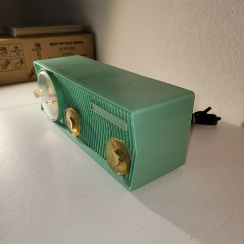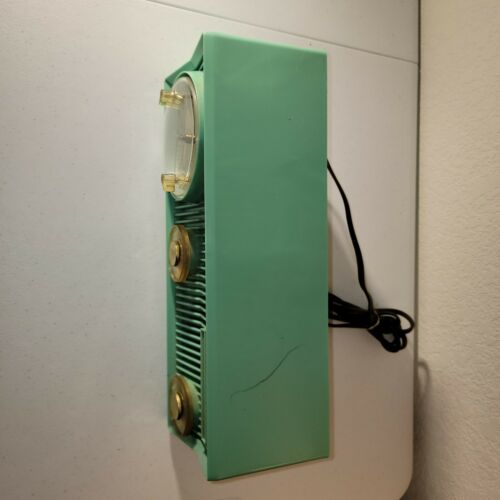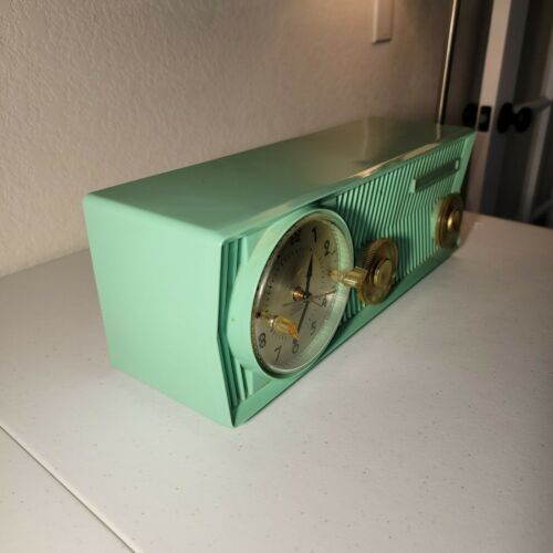 Vintage Blue Motorola 57CS-4A Tube AM Radio w Telechron Clock.