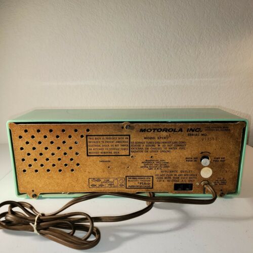 Vintage Blue Motorola 57CS-4A Tube AM Radio w Telechron Clock