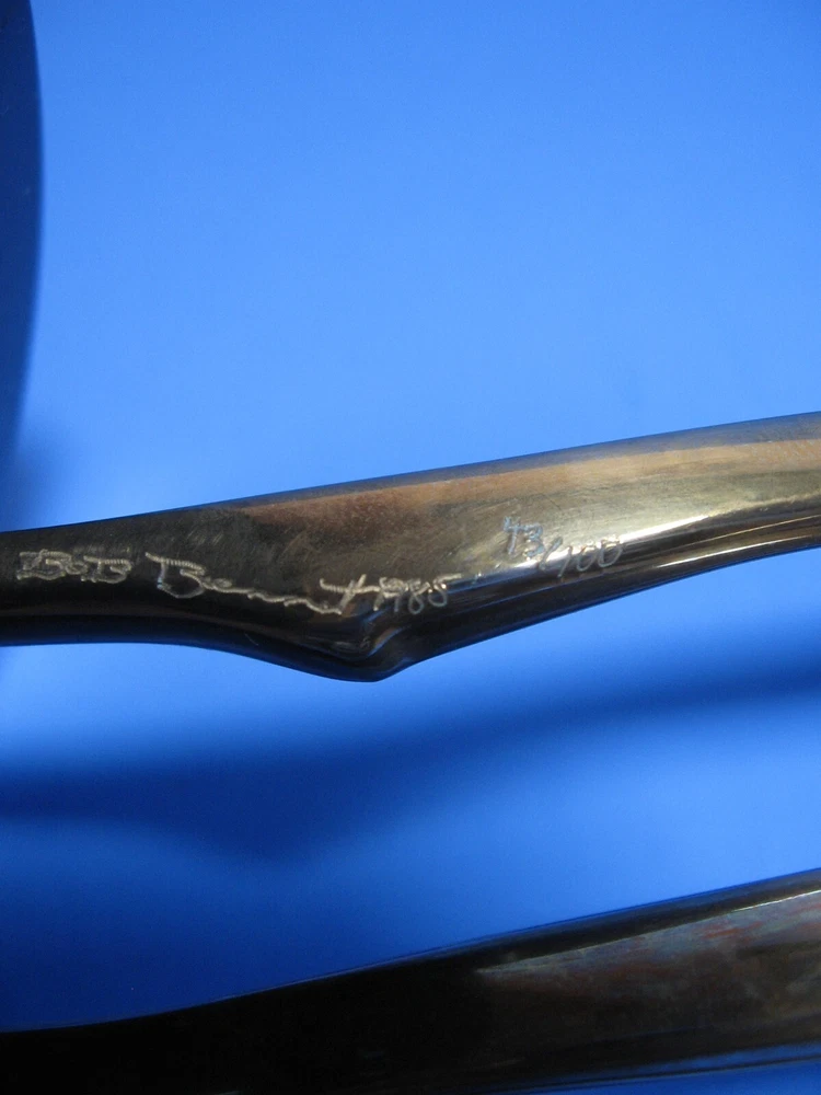 1985 limited edition bronze sculpture "Elegance" by noted artist, Bob Bennett. It is number 43/100. Hand signed. Black marble base. Size is about 8" tall (there were two sizes of this piece and this is the smaller study size). Displays nicely on a shelf. Excellent condition. There is some tarnish from age. No dents or damage. The marble base is also in excellent condition. Thank you for viewing this item and please email me with any questions.