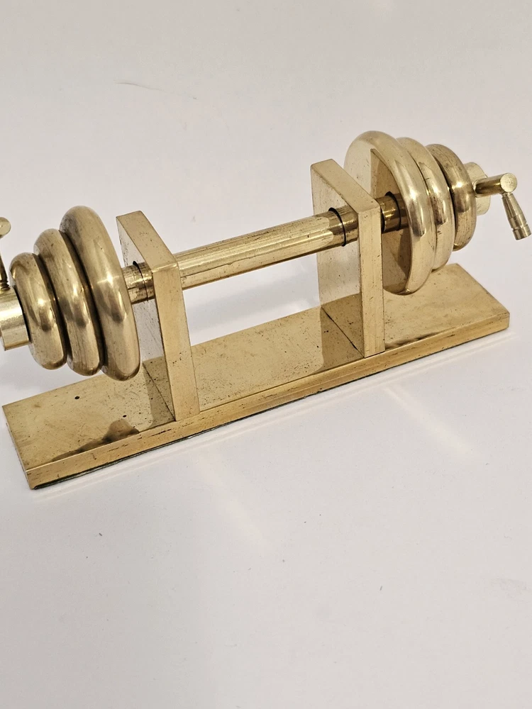 Vintage Brass Barbell Weight Set Paperweight Miniature SH2. Condition is Used. Shipped with USPS Ground Advantage.