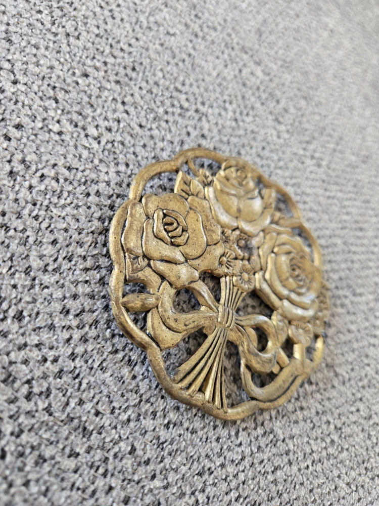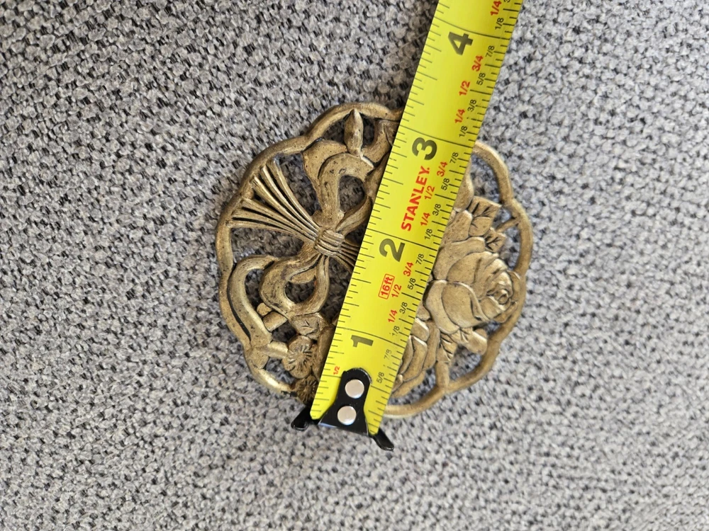 Vintage Brass Floral Flower Trivet Round Footed Candle Topper / Decor / Trivet