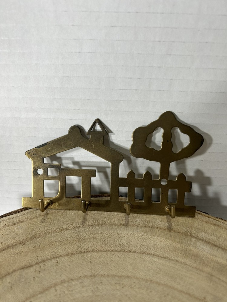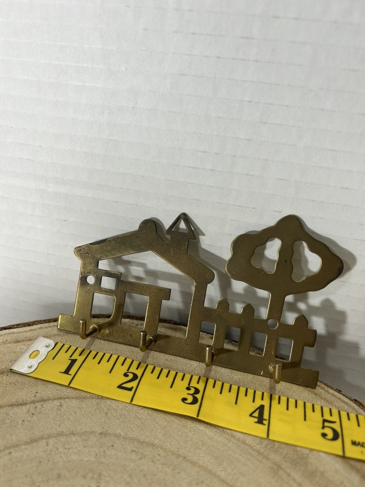 Vintage Brass House Tree Key Holder Hanger Wall Mount 4Hooks Key Holder. Condition is Used. Shipped with USPS Ground Advantage.