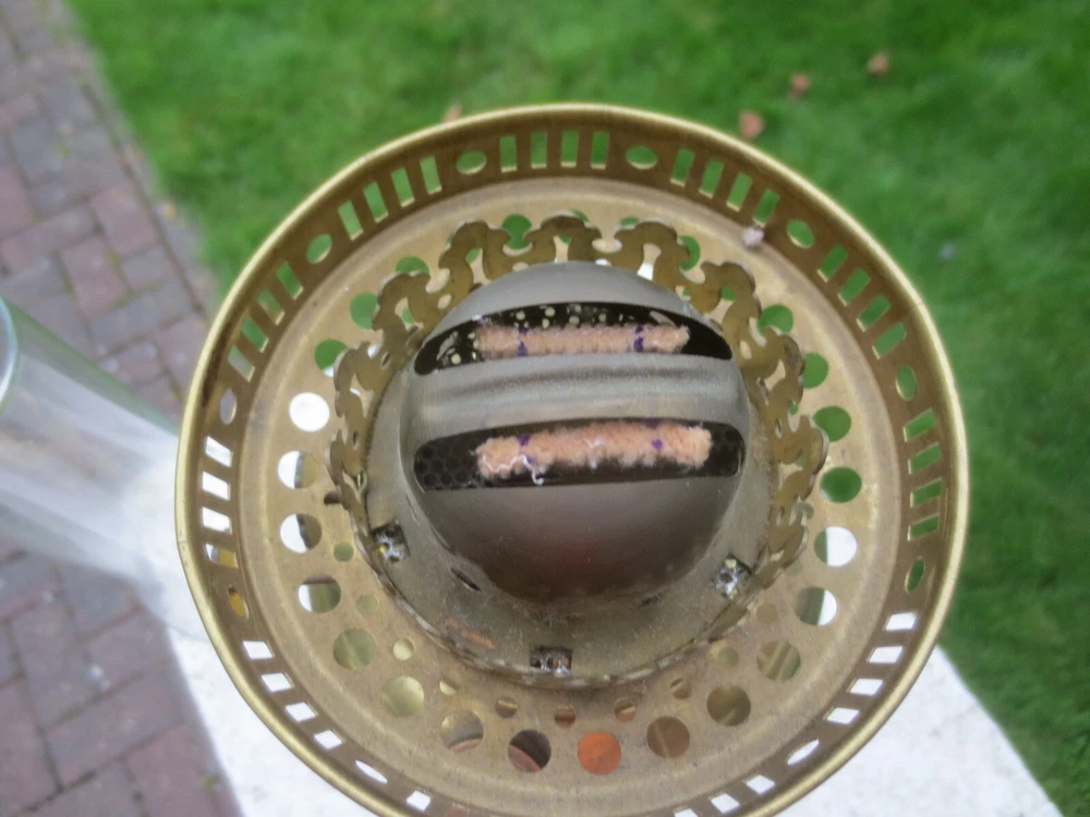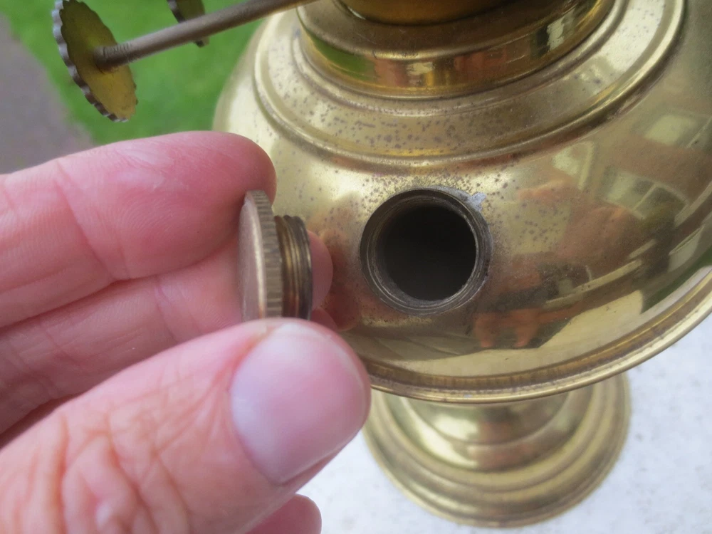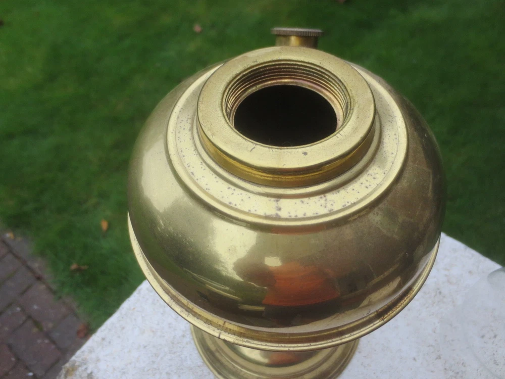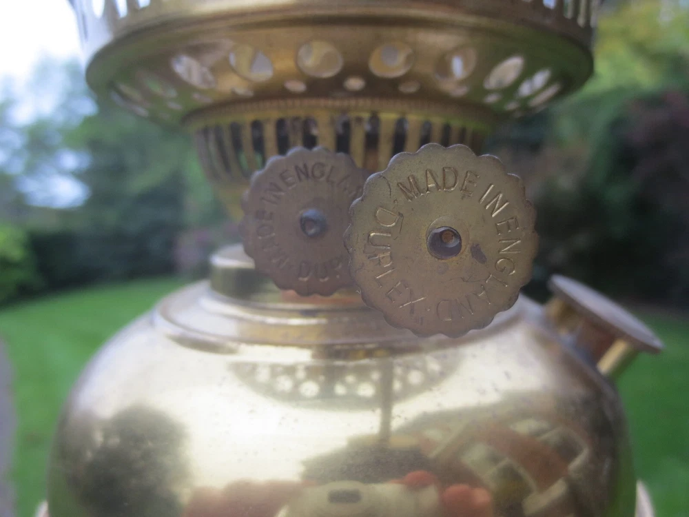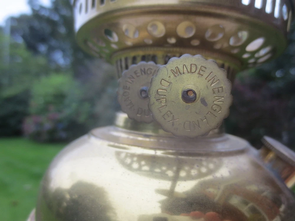 UP FOR AUCTION IS THIS OLD VINTAGE BRASS TABLE OIL LAMP, COMPLETE WITH CHIMNEY. THE LAMP IS COMPLETE AND FULLY WORKING. BRASS BASE AND FONT BRASS FONT WITH REMOVABLE FILLER CAP ENGLISH MADE TWIN DUPLEX BURNER IT HAS FULLY WORKING WICK WINDERS AND HAS SOME WICK STILL IN IT ROUND BULGE CHIMNEY THE LAMP WILL BE WELL PACKED THERE ARE AGE RELATED MARKS, DENTS, SPLITS AND IMPERFECTIONS ASSOCIATED WITH ANTIQUE PARTS. PLEASE NOTE, ANTIQUES WHICH ARE MANY YEARS OLD WILL NOT BE IN BRAND NEW AND UNTOUCHED CONDITION. ANY MAJOR DAMAGE OR FAULTS I WILL TRY AND POINT OUT. EVEN WHEN THEY ARE IN GREAT CONDITION, THEY WILL HAVE SOME WEAR COMMENSURATE WITH THEIR AGE AND USE. PLEASE TAKE THIS INTO ACCOUNT. . FOR THE CORRECT OVERSEAS POSTAGE PLEASE CONTACT ME AS ALL DESTINATION PRICES VARY THERE IS SOME WICK WITH THE LAMP.