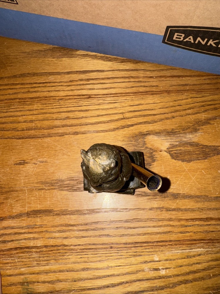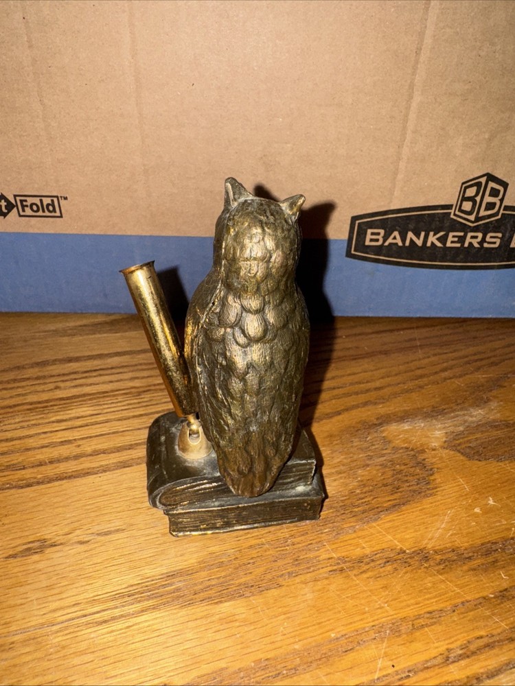 The Vintage Brass Owl Pen Holder is a rare and unique desktop collectible made of brass. This intricately designed pen holder features an owl silhouette, adding a touch of charm and elegance to any workspace. Crafted with attention to detail, this piece is not only functional but also serves as a decorative piece that adds character to your desktop. Perfect for collectors or those looking to add a touch of vintage flair to their workspace.