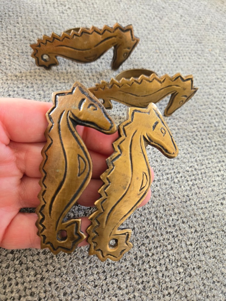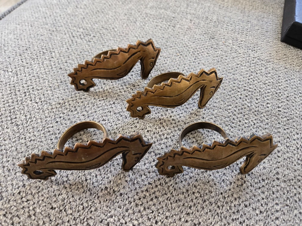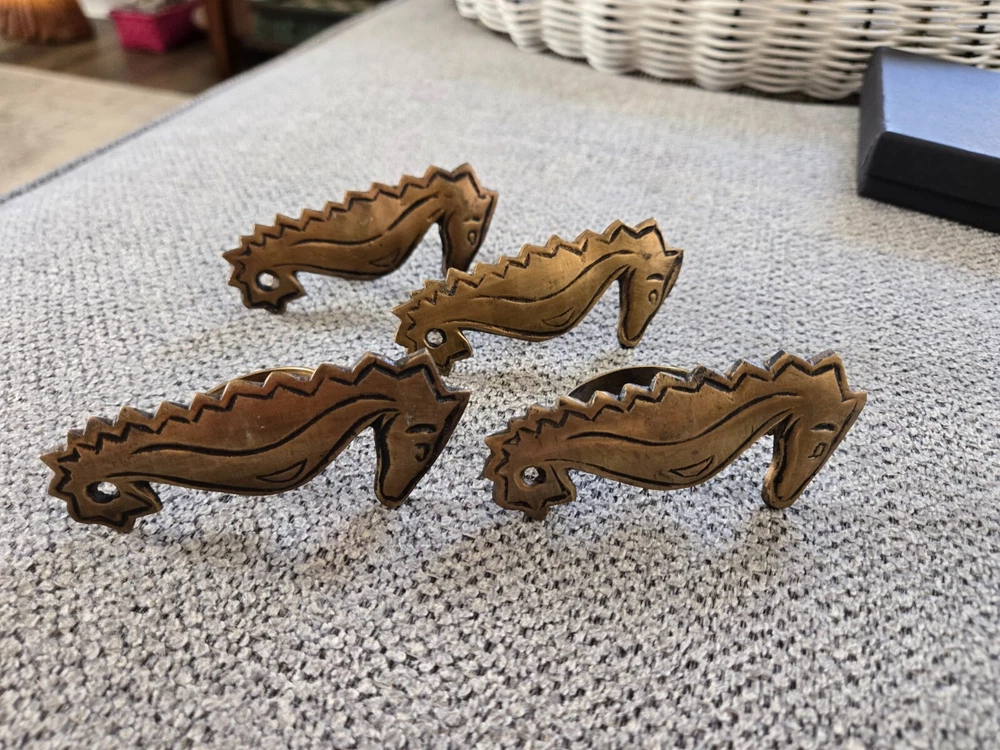Vintage Brass Seahorse Napkin Rings Beach Theme Set of 4 Sea Decor