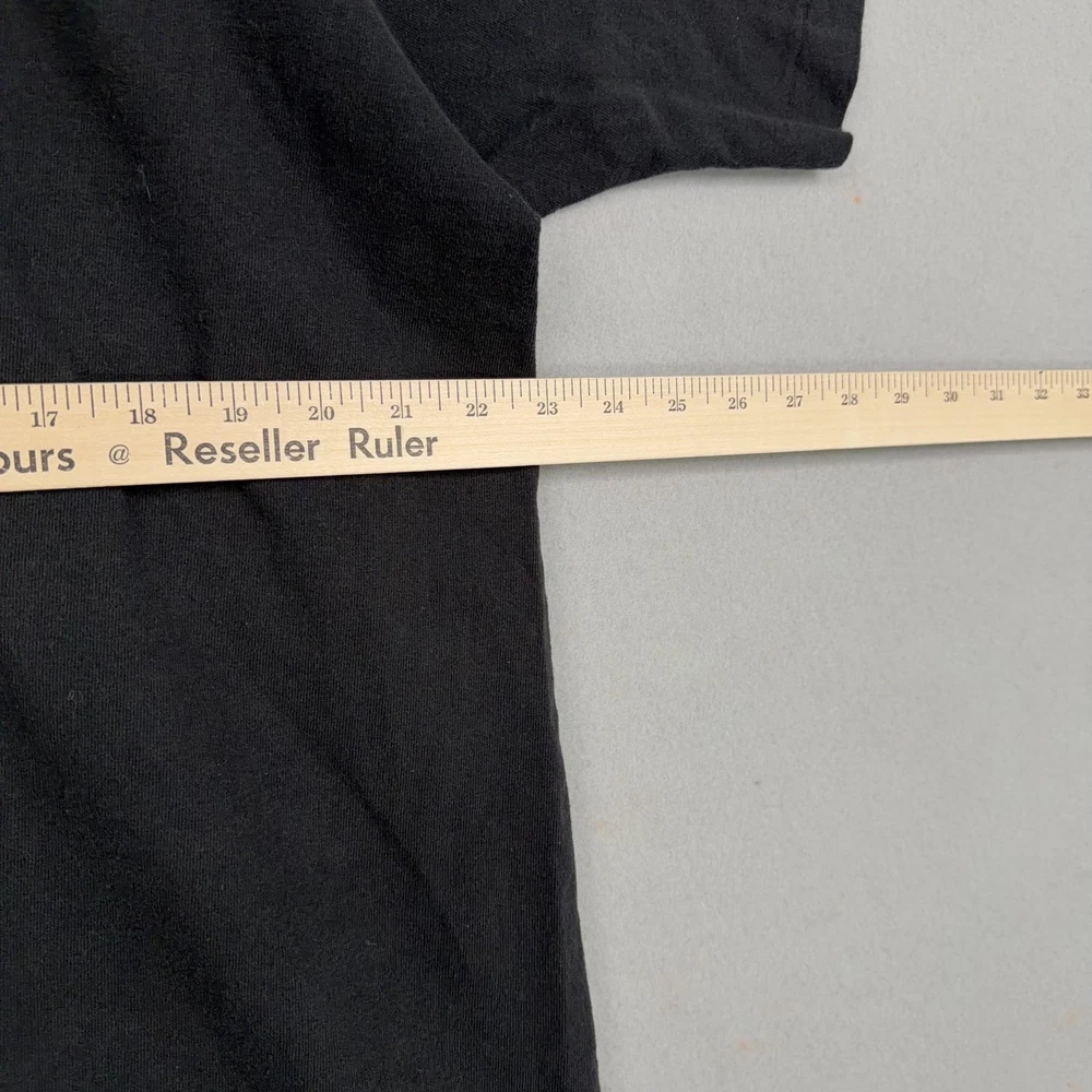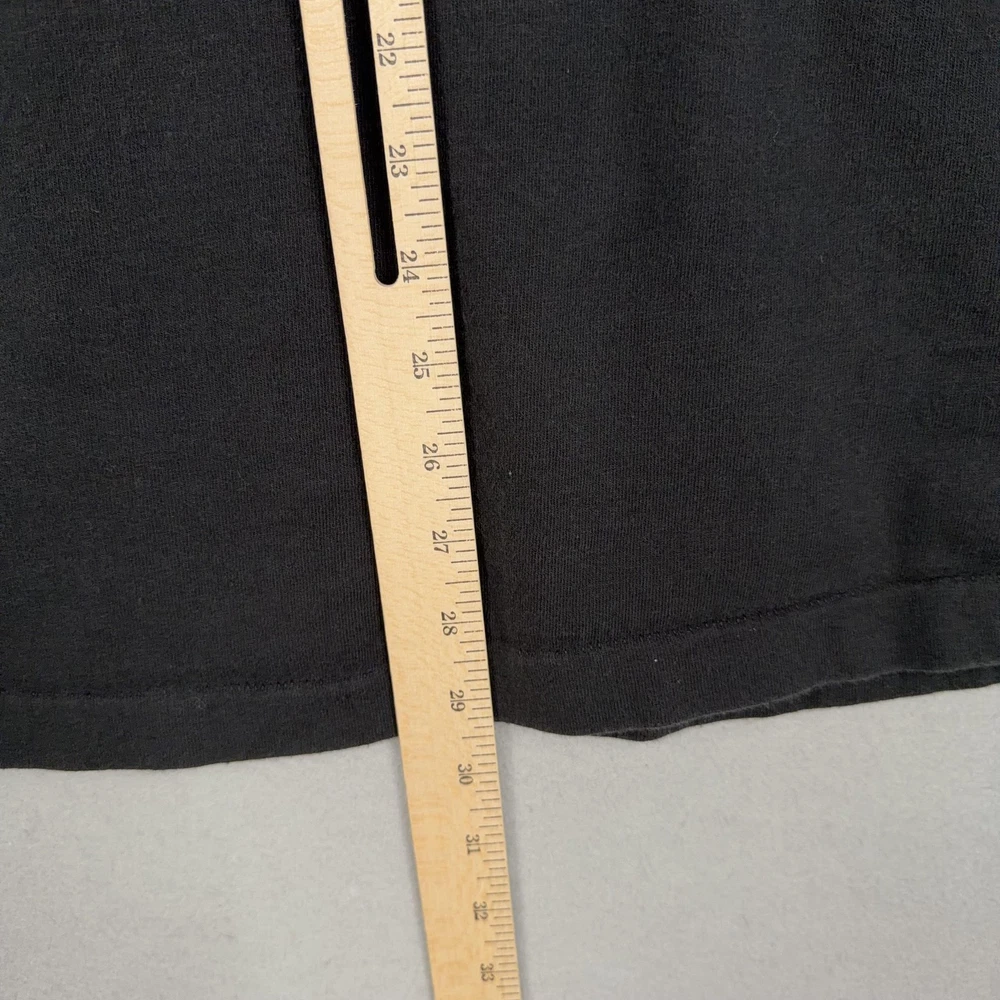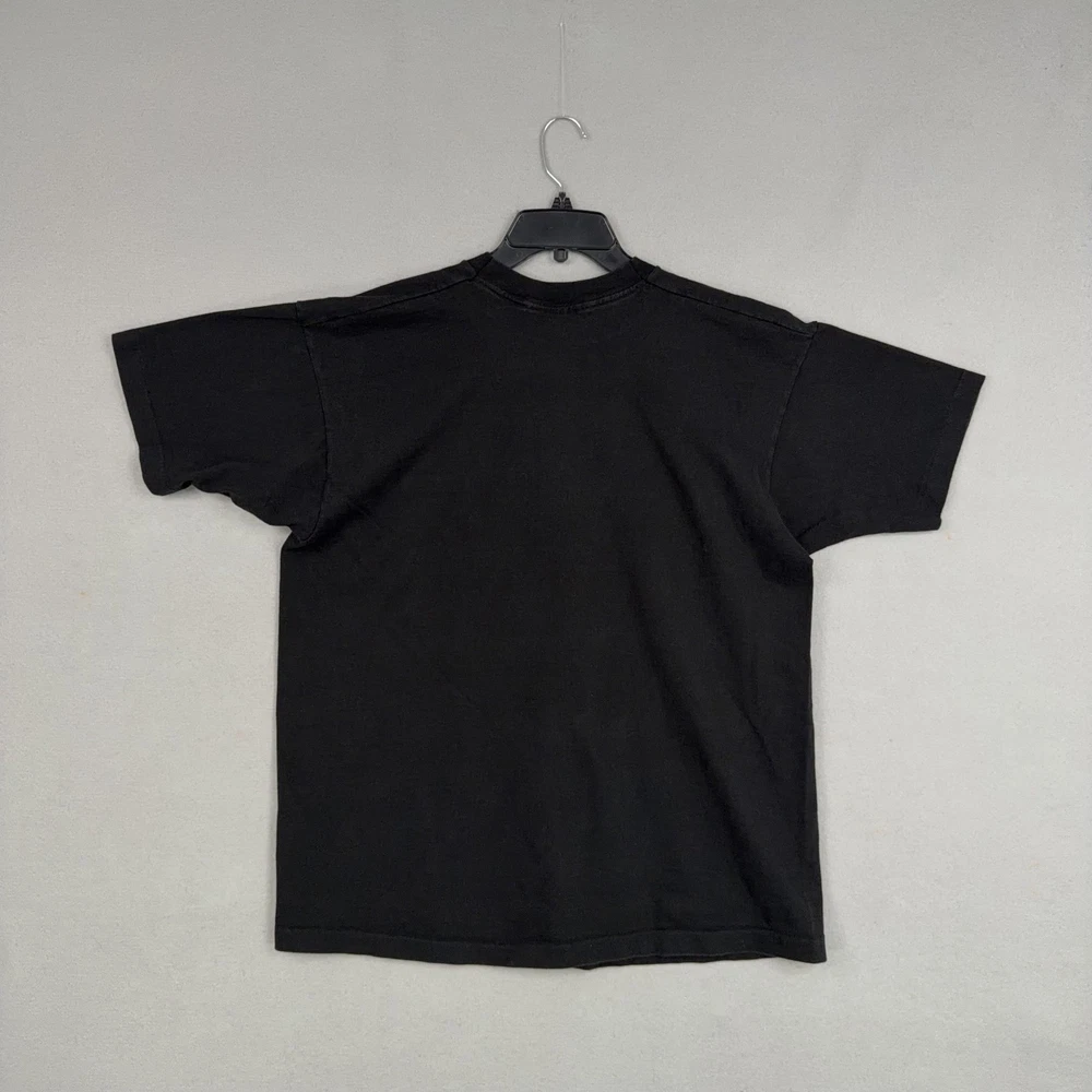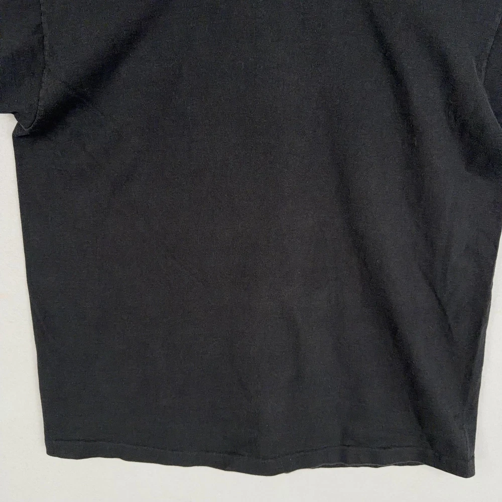 Vintage Bronx Zoo Shirt Mens XL Black Zebra Graphic Fruit Loom USA 90s Previously worn Bronx Zoo graphic tee with normal wash and fade to black fabric. Front zebra graphic shows light wear from laundering but remains clear and legible. No obvious holes, tears, or major stains visible in the photos. Brand: Fruit of the Loom Subject: Bronx Zoo zebra graphic souvenir shirt with large front print reading "Bronx Zoo" and signed "K.T." Color: Black shirt with silver/white zebra illustration and script text; back is solid black with no graphics. Size on tag: XL Adult. Material: 100% cotton preshrunk (per tag). Made in USA. Details: Short sleeve crewneck shirt with ribbed collar, straight hem, and classic unisex fit. Features iconic Fruit of the Loom woven neck tag and bold single front graphic. 22916 Measurements: - Previous washings may change the sizing written on the tag. - Please refer to the photos above for all measurements. - Please compare our measurements to that of one of your favorite garments. - Please note, item measurements are approximate . All items are bagged and sealed after being photographed, then stored in a smoke free environment to ensure the item is exactly the same as when photographed. All items have been washed per eBay standards & policies. I carefully package and ship daily. Feel free to contact me with any questions.