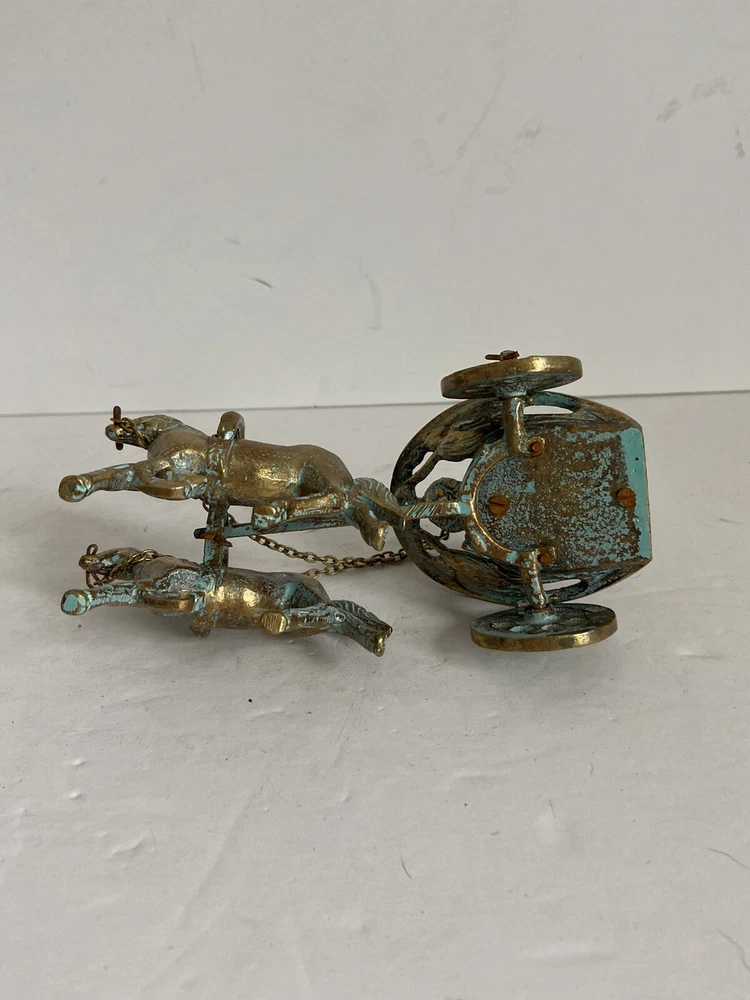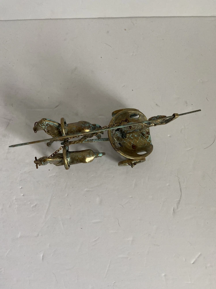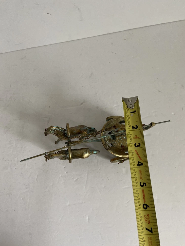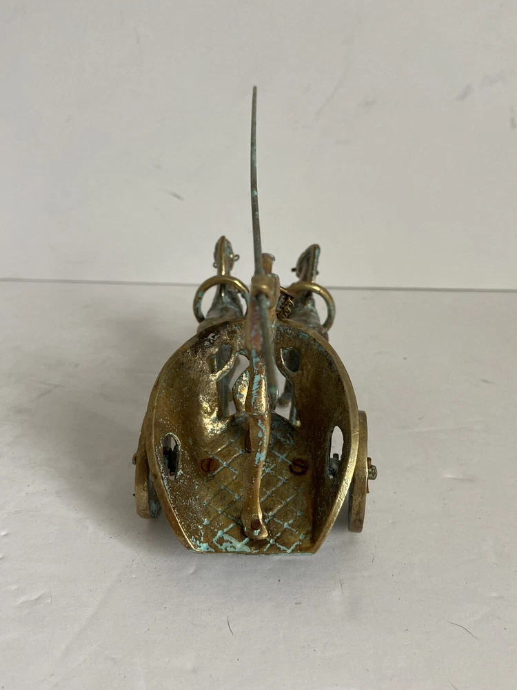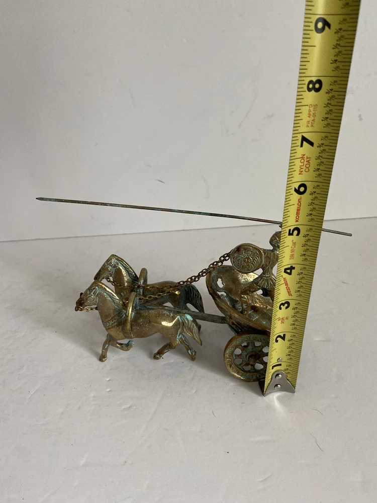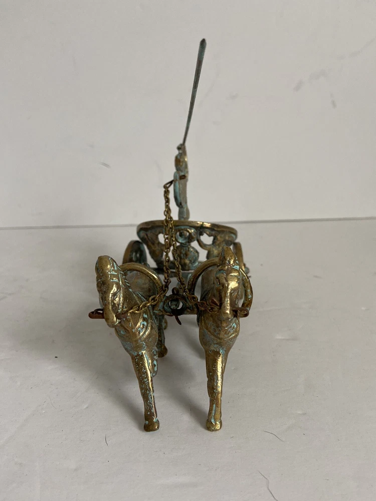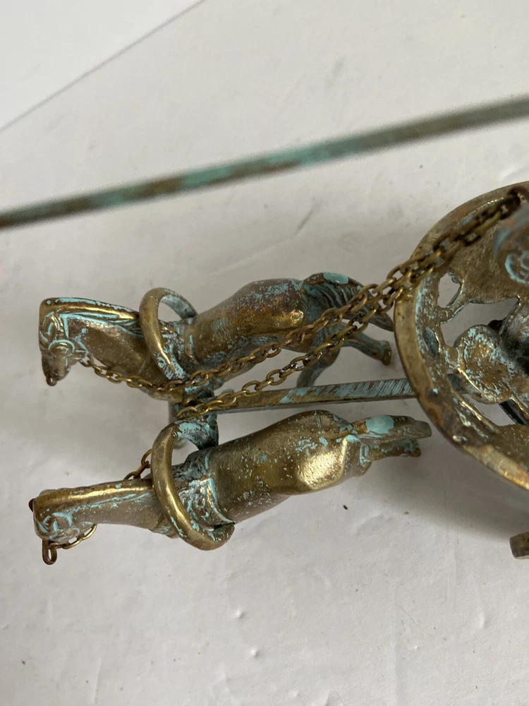 This vintage bronze statue depicts Achilles on a horse-drawn war chariot, a scene from Homer's Iliad. The statue is a beautiful work of art showcasing the skill of the bronze casting technique. The sculpture is perfect for art enthusiasts, especially those interested in Greek mythology. The statue is made of bronze, a durable material, and is perfect for display in any setting. The sculpture has a 3D style and is a great addition to any collection. Shipping: Items ship next day (except on Sundays) in premium packaging to ensure the utmost care for your purchase. Questions or Offers?: Feel free to message or make an offer. Preowned Vintage Condition: As this item is preowned and vintage, it has a history and character that set it apart. Vintage items may exhibit unique wear and minor perfections, which add to their charm. I’ve done my best to showcase the item's vintage conditiong through descriptions and photos, so please review them thoroughly before buying and reach out with any question.