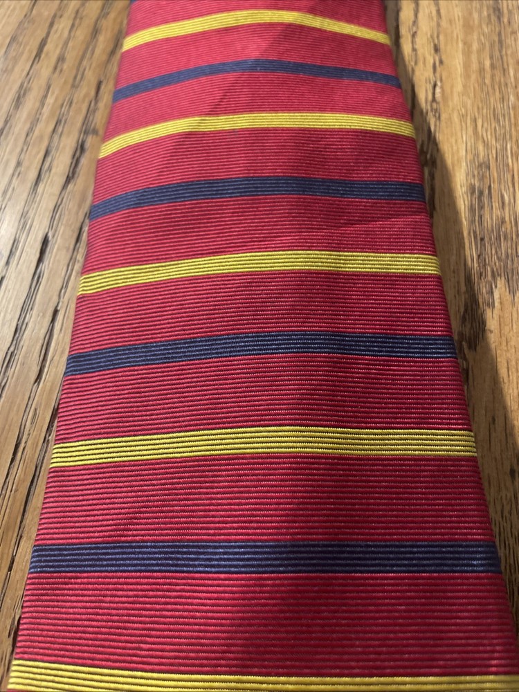 This Vintage Brooks Brothers Repp Silk Horizontal Stripe Tie is a classic and preppy accessory for men, made in the USA with 100% silk fabric. Featuring a multicolor striped pattern, this tie exudes a timeless elegance perfect for formal occasions or adding a touch of sophistication to a smart-casual look. The high-quality material and craftsmanship make it a versatile and stylish addition to any man's wardrobe, showcasing the renowned Brooks Brothers brand and traditional design elements.