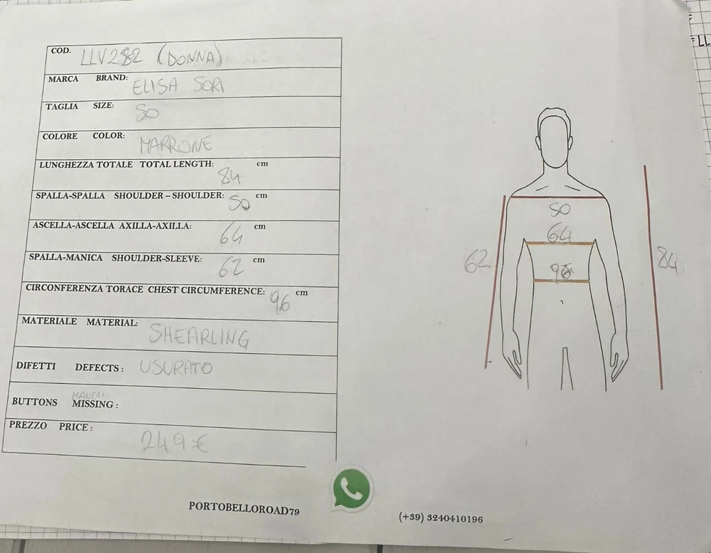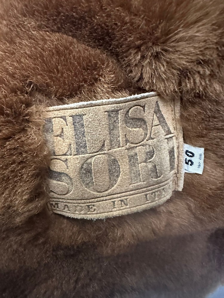 Type:Jacketmaterial texture:SheepskinSize:50Material of the coating outer:SuedeBrand:Elisa SoriOuter Shell Material:Does not applySize Type:RegularVintage:YesDepartment:womanClosure:Buttoncharacter:EliseColor:BrownStyle:Sheepskingtin13:Does not applyUPC:Does not apply