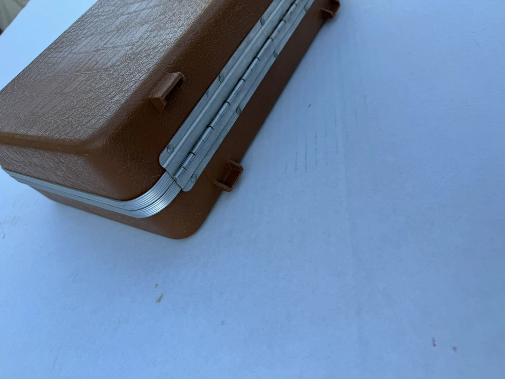 This vintage hard-shell case is a fantastic find! The faux-alligator leather gives it a classic, rugged look while the sturdy metal hinges and latches ensure durability. The egg-crate foam lining keeps your revolver or valuables snug and protected. Perfect for collectors or anyone who appreciates retro-style storage. Love the rich brown color—great condition for its age! Just be aware it doesn’t come with a key, but that’s a minor trade-off for such a cool piece. Highly recommend!