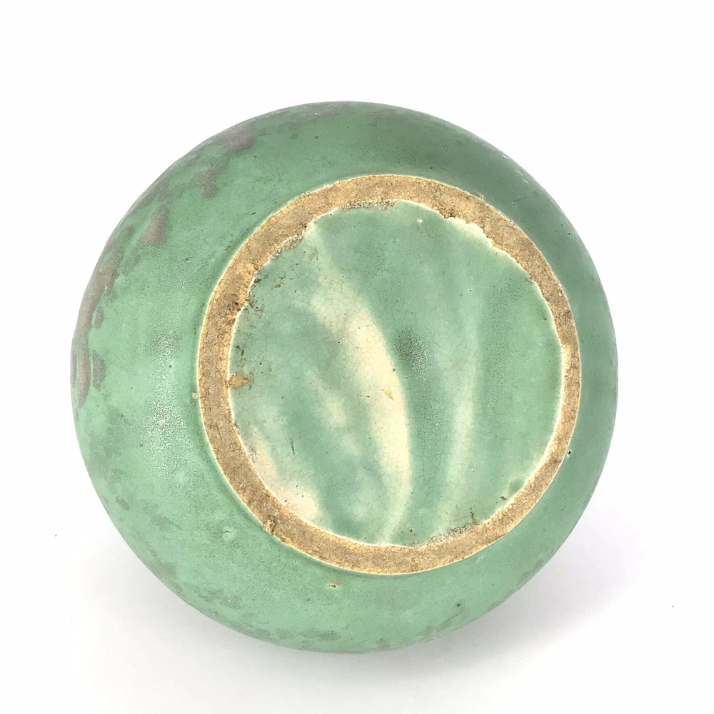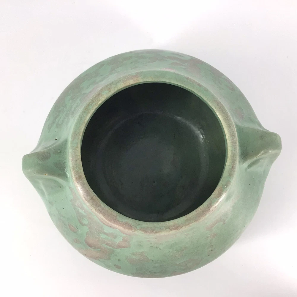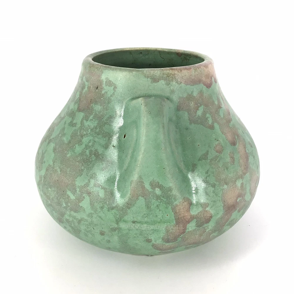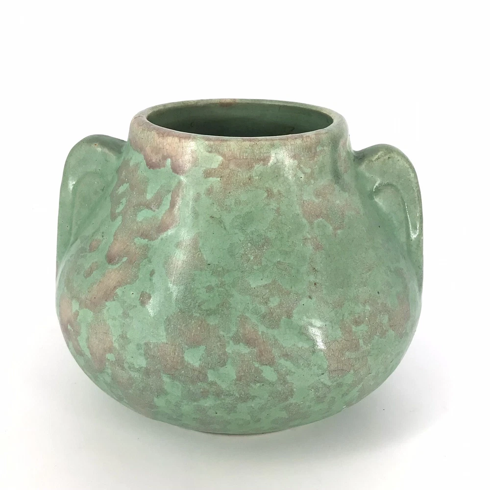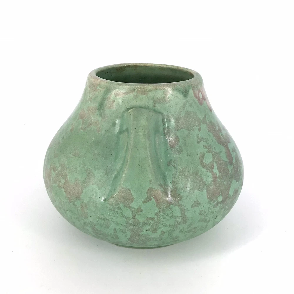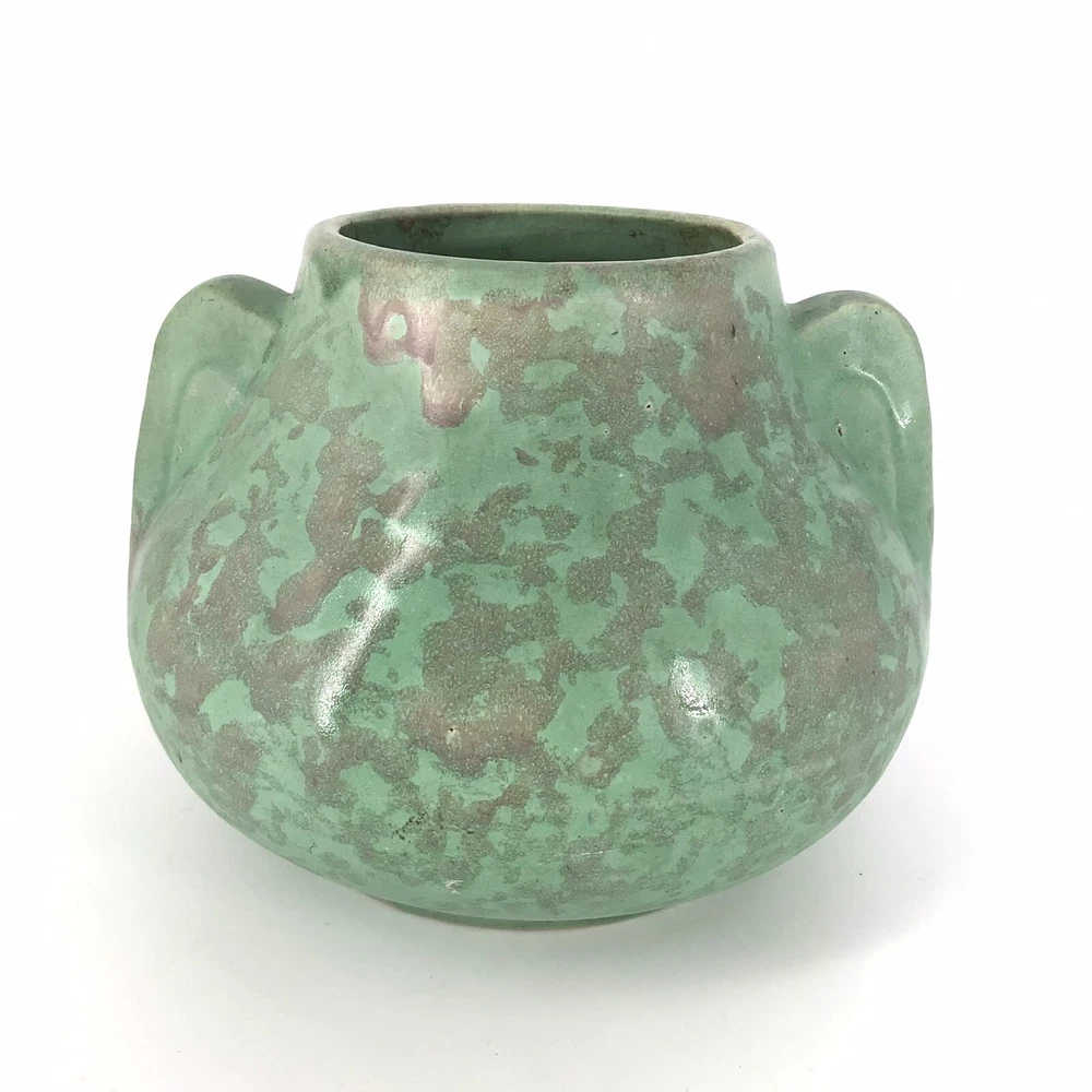 Vintage Brush McCoy Art Pottery Vellum Vase Green Mottled Glaze 1930’s Arts and Craft Era. Condition is used, no chips or cracks, see photos for details. This measures 6 1/4” x 6 x 5” tall. If you have any questions, or would like more photos of this item, please send me a message. Take a moment and visit my eBay store for many other great vintage items. I list new items every day so stop back frequently as you never know what you’re going to find from day to day.
