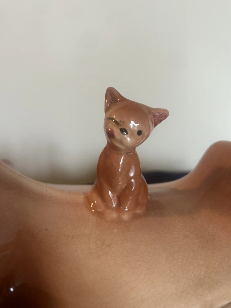 This vintage Brush McCoy cookie jar with lid is a charming addition to any farmhouse-style kitchen. The jar features a unique design with a brown color and an animal-shaped lid. It has one compartment and is made of ceramic material. The item measures 13 inches in length, 8.5 inches in height, and 6.5 inches in width. The jar is an original piece from the 1950s and is not handmade. It is a great collectible item for those interested in antique pottery. The item comes as a set of two with another item included in the package. It is not an antique piece, but it is a vintage item with a model name of Brush McCoy Elsie W10.