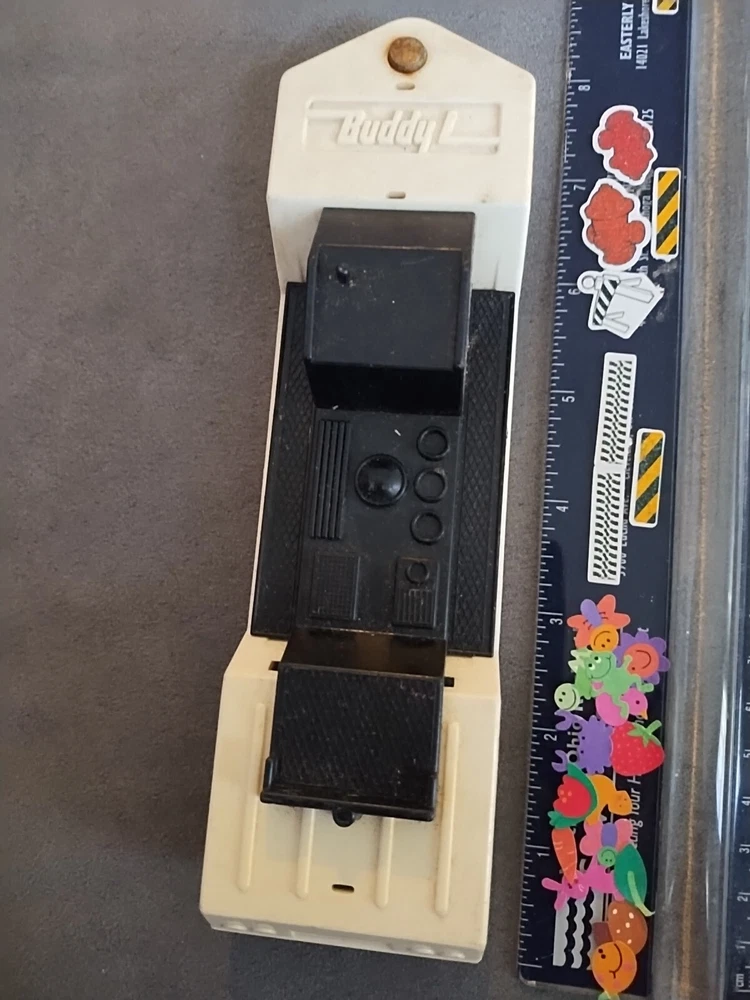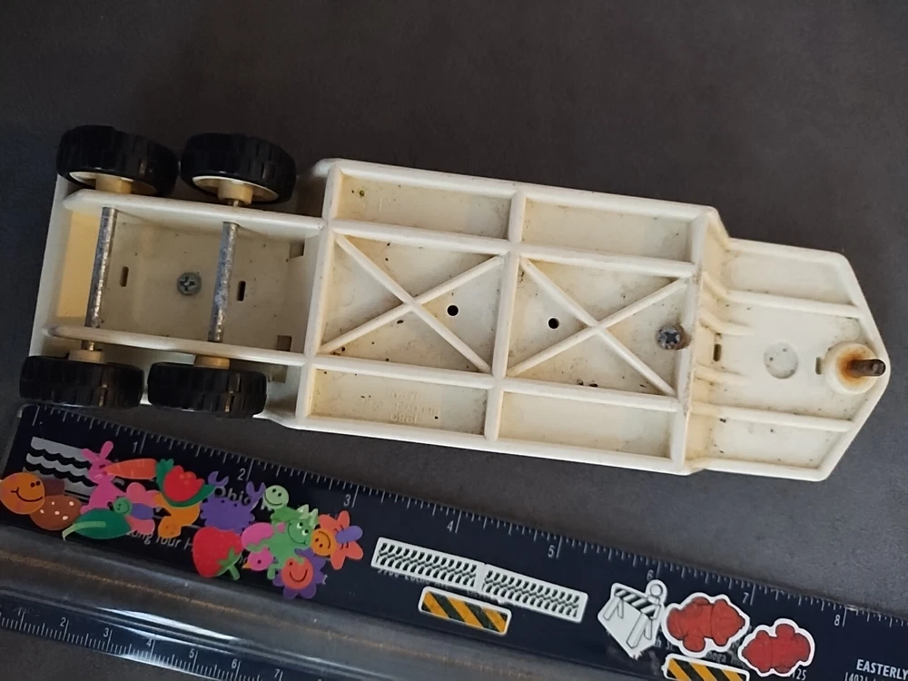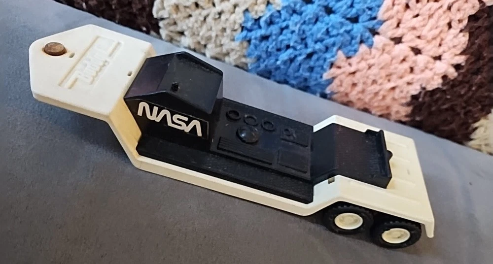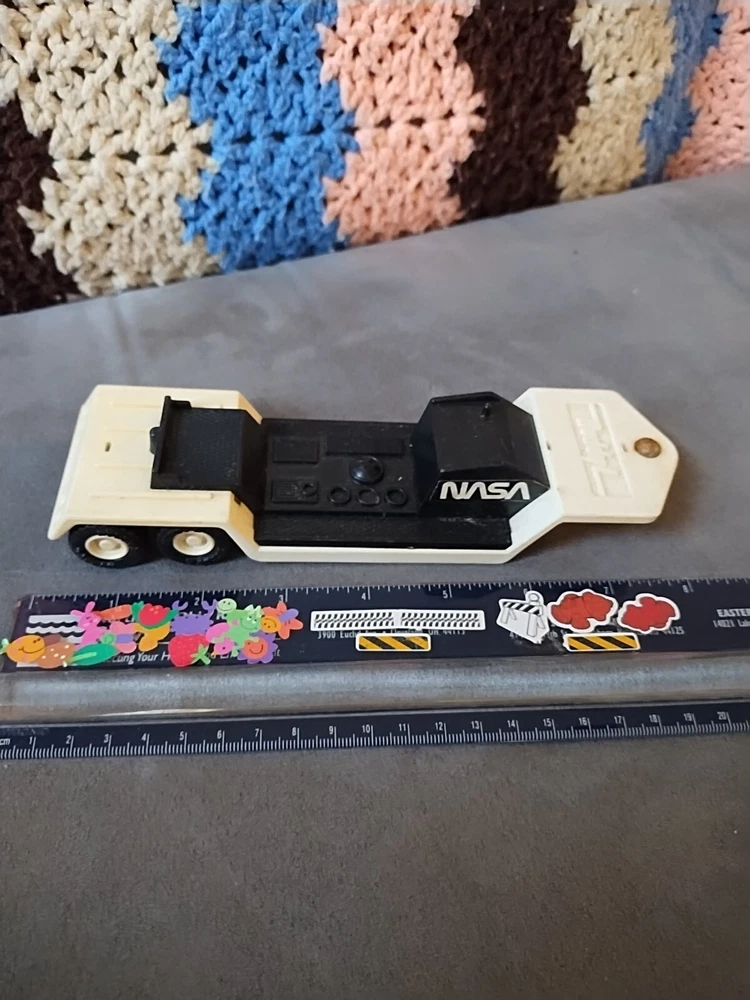 Vintage Buddy L NASA Flatbed Trailer White Macau 8" long black toy figure