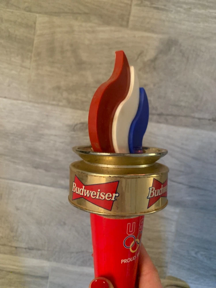 Vintage Budweiser USA Olympic Sponsor Torch Flame Beer Tap Handle Plastic